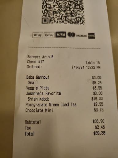 Ā Ā Ā Read moreAladdins has such great food but such poor service. I've placed a handful of carry out orders at this location and every single time I pick up my food I've had to wait anywhere from 15-20 minutes extra when I arrive. If my food (one roll and one hummus chicken plate) is going to take 45 minutes, I would appreciate it if I was told that. I placed my order at 12:15 and my food was not ready until 12:55. The pick up time was supposed to be 20 minutes from when I placed my order.. To make matters worse I got halfway home only to realize they didn't put all my hot sauce in the bag and turned around to go back and get it. As the customer I shouldn't have to double check my order for accuracy and I most certainly shouldn't have to wait double the time. The workers including the manager failed to even acknowledge how much longer I had to wait for my order. An apology would've been nice instead being made to feel like my time doesn't matter. To top off my experience I arrived at home with a cold chicken salad roll. Complete waste of time, money and patience. This is also seemingly the only location where you do not receive a complimentary extra side of pita when requested, I think to pay almost $13 for a hummus based dish, the restaurant should probably give out more than two pieces of pita bread. I'll have to purchase pita bread from Giant Eagle later just to finish my lunch...