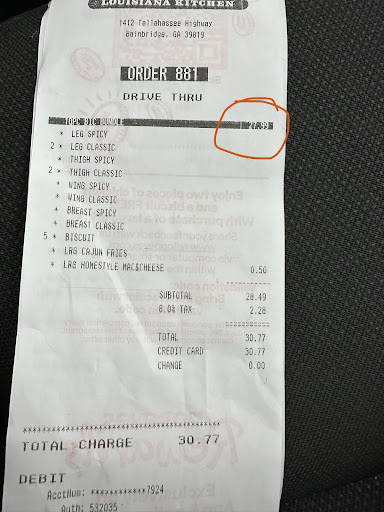 Read moreFirst thing first, the drive thru works! The manager answered the headset but they have a note saying the drive thru is down. I gave them the benefit of doubt that maybe they didn't have enough staff. But they did. 1 on te front counter, 1 in the back, 1 cooking and the manager running around. I had to wait forever for my food. Another couple and I ordered at the same time. The manager made sure he gave them fresh chicken for the wait. I continue to wait after they left. Once I made it home I realized an item was missing. Once I got up there I hear the little girl who was on front counter say people weird. I assumed she wasn't talking about me because I literally have the receipt. So she saying something else the manager laughing. I had too wait again because clearly she didn't do her job. When I was leaving the little girl said something else as I'm walking out. I say yall weird and leave. Even shift always sucks. Every time it's something at this location. I want to post the receipt since they think I was lying. I paid $34, I want everything I paid for. Next time I will give the food back and ask for a refund. Cant beg you...