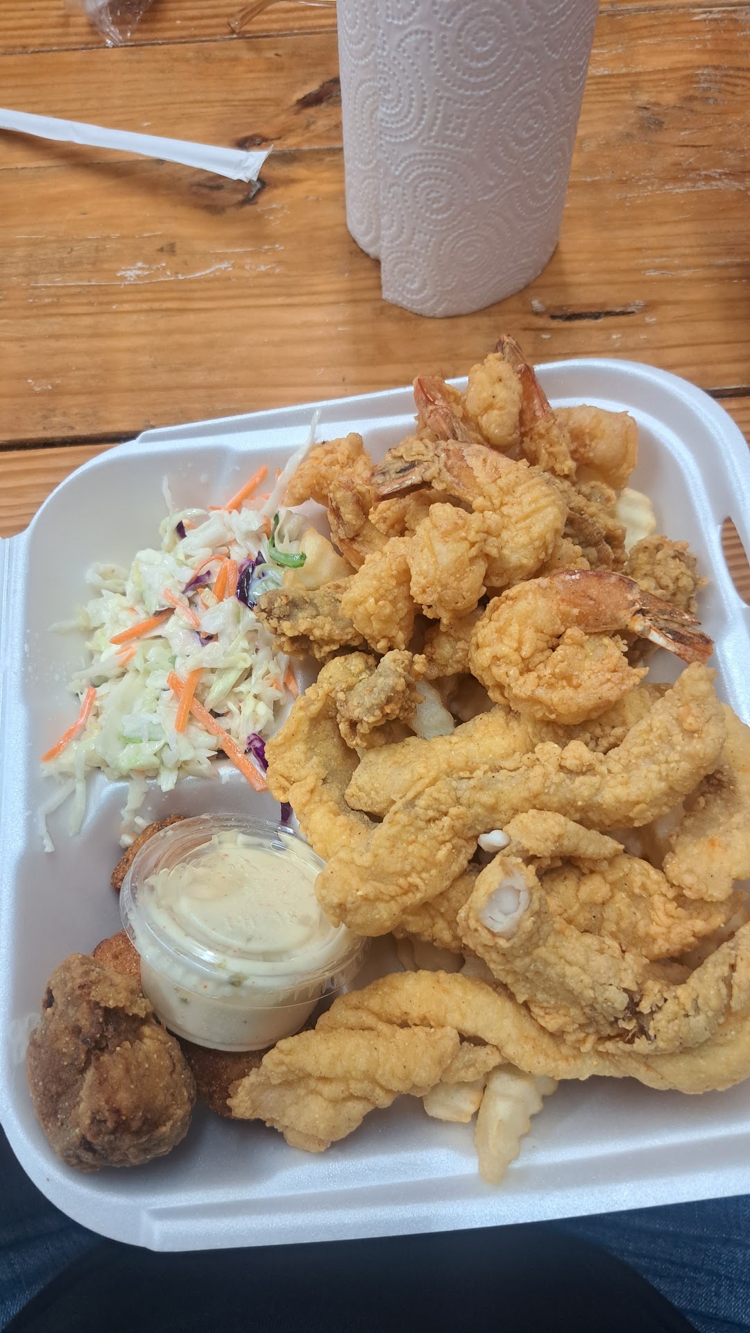 Read moreThe food was good it wasn't the best seafood I had ever had but it was good the portions were a little on the light side I thought it should have been a little bit more when I asked for a large Fish Box but it's always a good place to go the young lady at the register and also was the same person on the phone seem very tired maybe she was just tired but it's always nice to be very friendly when you're on the phone with someone and not sound all down and everything that's kind of a bummer but for the most part the place was good clean and environment is always nice to go to it wasn't a bad experience but it was just not the experience that I wanted but this was only one time that that has ever happened Brittany Seafood has always been great and good to me and I will continue to go there one bad experience does not cause me to not go...