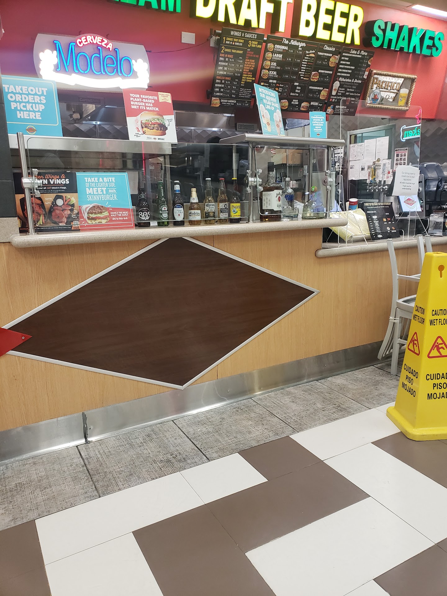 The staff on duty was patient with my out-of-date ordering and accommodated my wife's non-standard desire to fill her personal traveling cup with ice and a fountain beverage at a fair price.