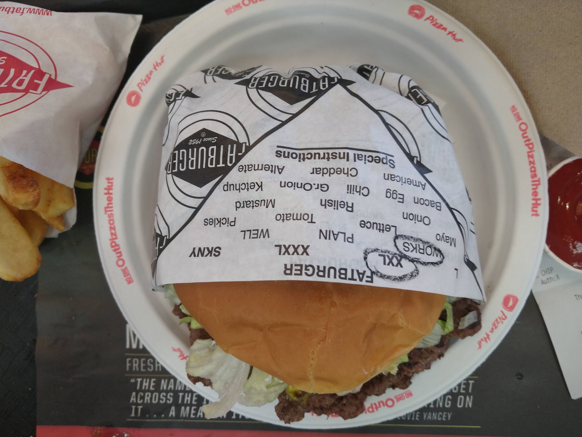 Read moreVisited Fatburger while stopping for lunch on way back to LA from Vegas. My LA friend says he lives Fatburger and rates them one of the best. He routinely rates them a 7 out of 10. He gave this one a 6.5 Since this is essentially at a gas station with KFC and a pizza place. My opinion: this is my first Fatburger and I lived it. Very good presentation. The burger didn't disintegrate. It was a little juicy: I got the XXL (two beef burgers in one bun) no cheese but with everything else included. Onion rings and fries. Soft drink is (as expected) bottomless. All in this cost me about $27 ($40 in total with my friend only getting a XXL with cheese). I would definitely recommend their burger. I think I know why my friend marked them down: the beef burger was...