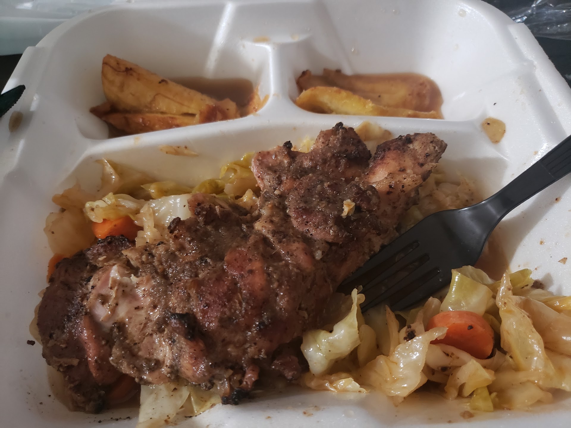 Read moreThis location has been on my list of places to go since I stumbled across it in some searches. I am always looking for something different than the mainstream for options to eat. I am pleased to report that I was not disappointed with this small Jamaican restaurant! Customer service was great. The girl helping me was very pleasant and helpful. They were out of rice, which is why it's not a five star review. They did give me extra cabbage to compensate the lack of rice. The jerk chicken plate is where it's at! Perfectly seasoned and cooked to a savory decadence! It doesn't end there with their very unique cabbage side dish. It carried a slight spice and tasted delicious. My child fell in love with the cooked plantain. It was sweet and savory, swimming in a Carmel type sauce. You should take the time to order from here. I look forward to hearing your take on this small and simple yet flavorful and...