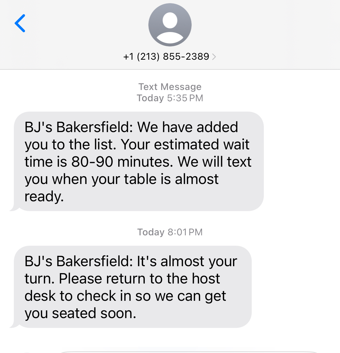 finally we went to the hostess and asked her to get us a to go box. We arrived at 7 PM and we’re not able to get out until 9 PM, despite placing our order ahead of time. The whole dining experience was stressful. I have never had such a miserable dining experience at BJ’s before, I know it was busy, and maybe the server is new, but he needs some more training. Overall, the negativity in this review is due to