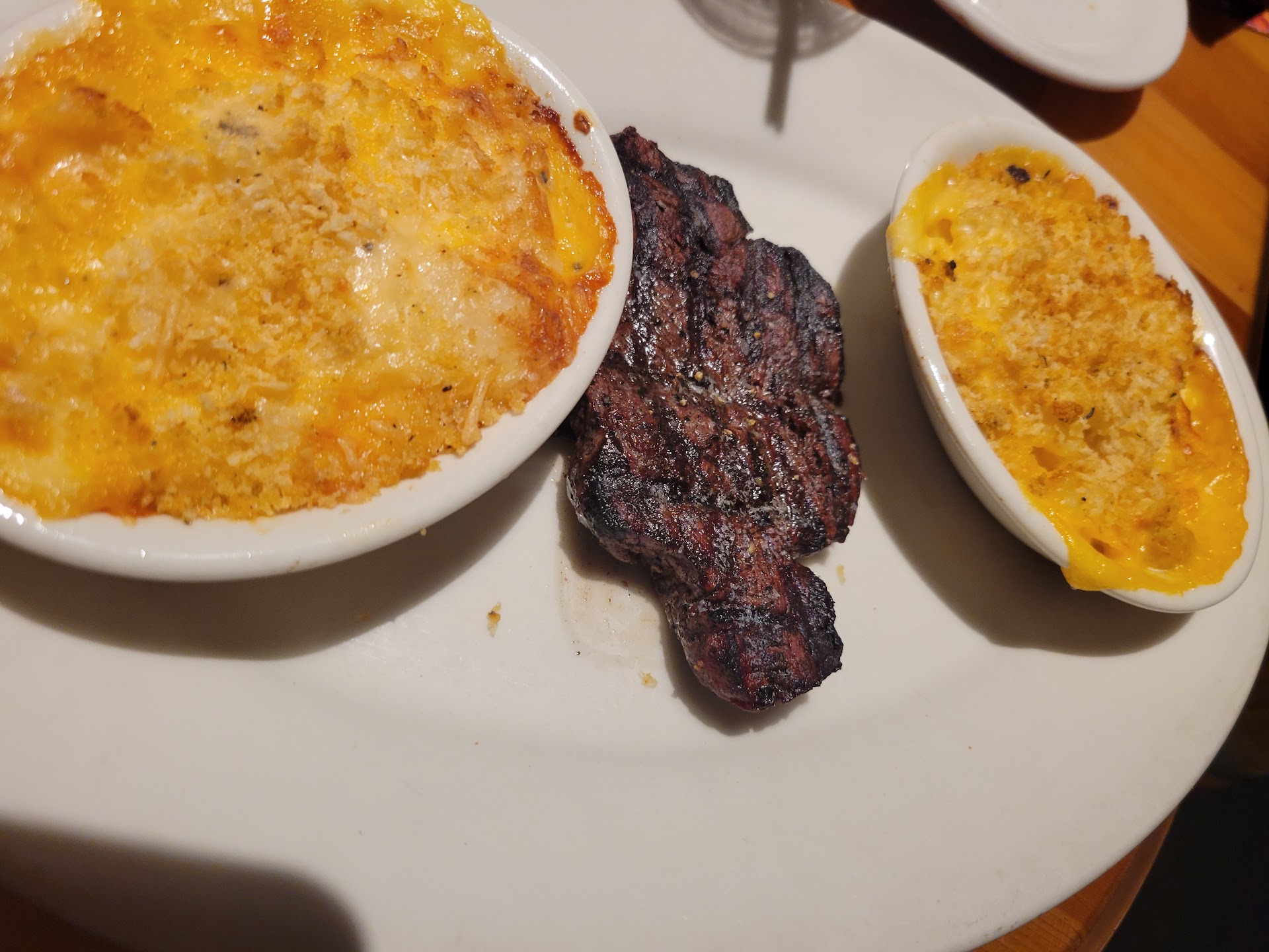ย ย ย Read moreThis rating is one star, only a bc there's anything no less than a 1 star rating. We will never eat here again. The food was terrible. The server, Taylor, was very helpful and sweet, and the manager did take my mother's food off the bill, and supposedly my vegetables, which I didn't quite get that as they were sides that went with the meal. They offered a free dessert. I must eat gluten free, so I obviously declined, but my poor 92 year old Mom, who was quite hungry when we arrived there, and who was still hungry from her terrible meal that she did not want, did choose a dessert. However, she was very unimpressed with her Caesar salad, and she ordered the sirloin steak which was a very thin steak, and she said she had to chew and chew and chew it. I tried cutting some pieces for her with the steak knife. It was obviously very tough. She tried the cold fried green beans and didn't like them either. I ordered the salmon with baby reds and corn on the cob. Before ordering the corn, I asked if it was fresh or frozen, and was told it was fresh. It was most definitely nasty, frozen and soggy corn. Nothing fresh about it at all. And my 2 baby red potatoes, yes two, were so cold, the soft butter wouldn't melt on them. I chose the tableside salad, but even the taste of that was not fresh and appealing. So they brought me sliced tomatoes, totally gross, and mixed vegetables and they were not hot either. I pushed them aside. I'd had enough of their lousy food. My Mom ordered sliced tomatoes, as her replacement for the green beans, and she too thought they were terrible. They were pale in color and had no taste to them. Honestly, the food was not top quality, but you better believe their prices are. For what they charge, they should serve top rate food, not something that tastes like it comes from a dollar store. And, I must add that the acoustics in the restaurant are so bad you can't have conversation at your table, bc you can't hear what your table mates are saying. It was exceptionally and annoyingly noisy. I even heard one hostess make a remark to another customer about how noisy it was, but in a laughing manner. My husband ordered the ribeye, green beans, baked potato and clam chowder. He is a retired chef. He knows good food, and fortunately, he said his meal tasted fine. So does that make one out of three okay? I don't think so. To make matters worse, even though I ordered from their gluten free menu, and I told the server I HAVE, to eat gluten free. It's not a fad thing, it's due my Celiac Disease. By the time I got home, I knew I had been gluttoned, bc I immediately began having some classic signs. Nothing like adding insult to injury, bc with my Mother's meal and my supposed sides removed from the bill, it still came to $92 00 before tip. This place charges like a 5 star restaurant. but you will certainly not get 5 star foods. My suggestion is stay away if you want excellent food, and if you are gluten sensitive, and definitely if you are looking for an enjoyable...
