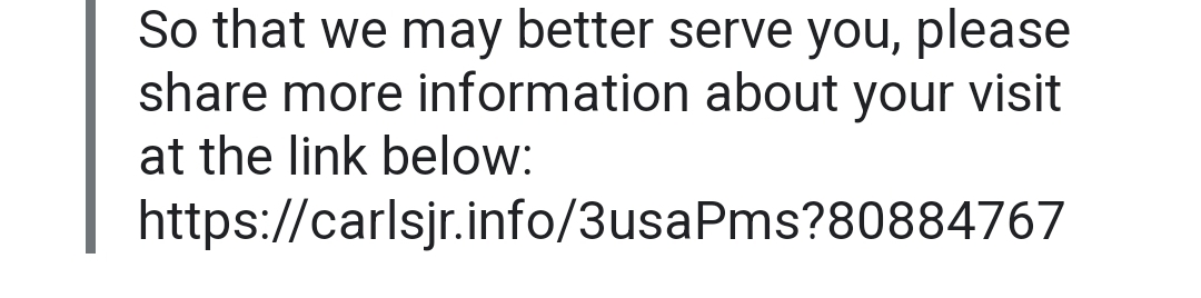 Read moreWorst experience at a Carl's Jr restaurant that I have ever had in my lifeOnline order through the app states that you drive up to the window and tell them your name and they prepared the orderThe server at the window argued with me that they did not have the order in their system even though the app shows that's how you're supposed to tell them it's there after showing her an email she questioned whether or not it was from that day. After 3 interactions one of which she stated she contacted her manger and would not give me my food and that a refund was not up to her that I needed to go thru the app she finally gave me the burger with "Next Time have an email." Closed the window and walked away. WORST CARL'S JR...