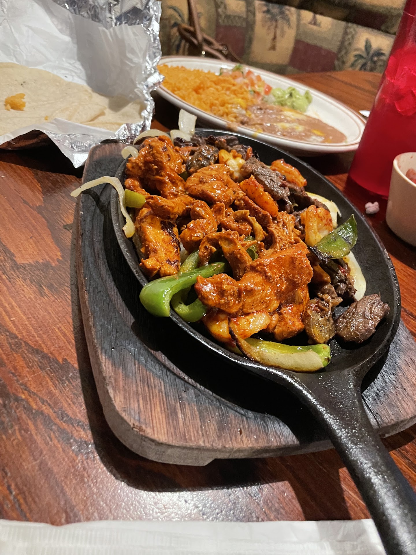 So....2nd bad....we decided we would go ahead and try the food. Big mistake! Our waiter, Juan, was honest when I asked him if the guacamole was made there or bagged, thank you Juan for that, to say the least, we did not order the guacamole. The chips brought to the table we covered in oil, I know they fry them but what happened to draining the grease off, every chip was covered. I ordered the soup, it was pretty good. My husband ordered the grilled chicken, at least that's what the menu stated. The chicken was battered and fried, he tasted it but that was it, he could not eat it. The guacamole that came w/his dinner, was from a bag, not fresh, but we already knew it would be, he did eat most of the rice which was probably from a bag ....heat- n- serve, same w/the veggies that came w/his meal. My husband asked Juan about the grilled....fried chicken and Juan said he got what the menu said. My hubby did let him know he expected grilled chicken. I went and got a menu to check what it said, maybe my hubby made a mistake....wwwell.....he hadn't, the menu stated grilled. Juan come back w/the check, I showed him the menu, and said maybe they had a miss print and should correct it....cause that was ....not grilled chicken.