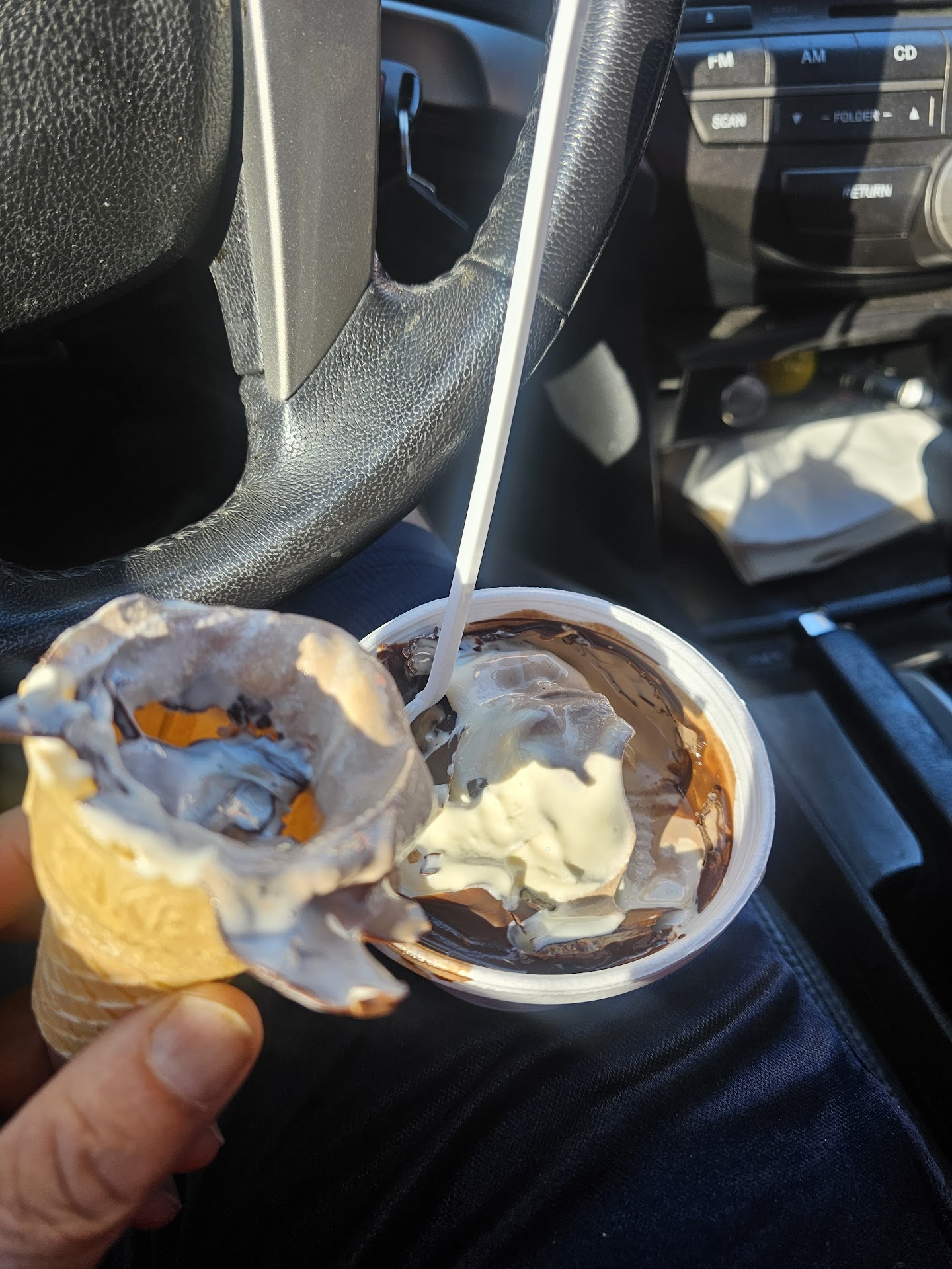 Read moreWe didnt have the Greatest GreenGirl @ Counter, she was Not very Patient, short not very nice.. Probably just wish she could Leave..You could tell ask a Question & she was very short & rolling Eyes..I'm in Sales for over 45 years & it has been many Years so I was looking forward to going w/ My Friend but It did put a Bad taste in My Mouth that Night.. We had Dinner My Giant Shrimp was Great, fries could do w/some help, but we decided to have Ice Cream Cone & Were rushed out, girl said we close in 5 min. I told her We were watching the Clock.. But still got put 3 min. To Closing but as soon as we went over the Threshold that girl slammed that door close and locked it the gentleman that was in there as well trying to eat his food actually got up wrapped his food and went and finished eating in his vehicle because they were so rude when you open at a certain time and you're supposed to close at a certain time you are not supposed to sit there and push your patrons out the door because you want that to be so you're supposed to be open during those hours even if it was we waited till that last minute we should have been able to do that and those girls push us all out right away and that was not cool so I don't think I will be back for many many more years and it was one of my favorite places to eat so that should tell you...