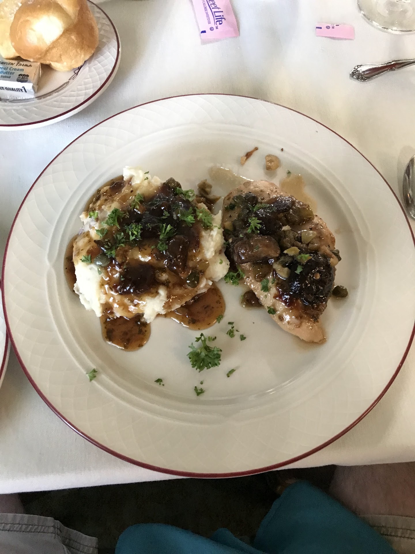 Food- 4 stars Everything was delicious, starting with the bread, the daily soup, the chicken, and ending with the cheesecake. Everything was very light, not greasy, and still tasty.