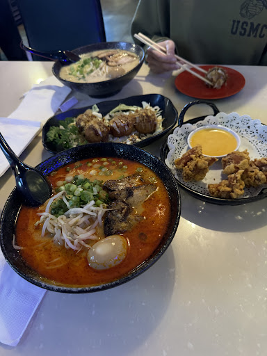 There's a few other ramen spots in town, and for the most part each of their menus are completely different from each other including this one. Sushi, chicken karaage, gyozas, and more. The stars of the menu are their signature dishes, the Hon Ramen (pork broth), and Hon Sushi. Both were extremely good. The ramen's broth was rich without being overpowering, and had a clean taste. The chashu pork was good too, with a good sear and good meat to fat ratio making it very tender. The sushi was savory, sweet, and good quality. The chicken karaage had a nice balance of crunch and tenderness and the spicy mayo it comes with pairs nicely. The gyozas could've used more filling, but was still flavorful, and the plating of it was nice. Baked salmon roll was good, and little too much sauce, but you can still taste the core food. The california tempura roll was really good. A nice balance of tempura batter. The The place looks good and more expensive than the actual prices of the menu. Prices remain comparable or cheaper than other ramen and sushi places in town. Overall, great experience, great looking place,...