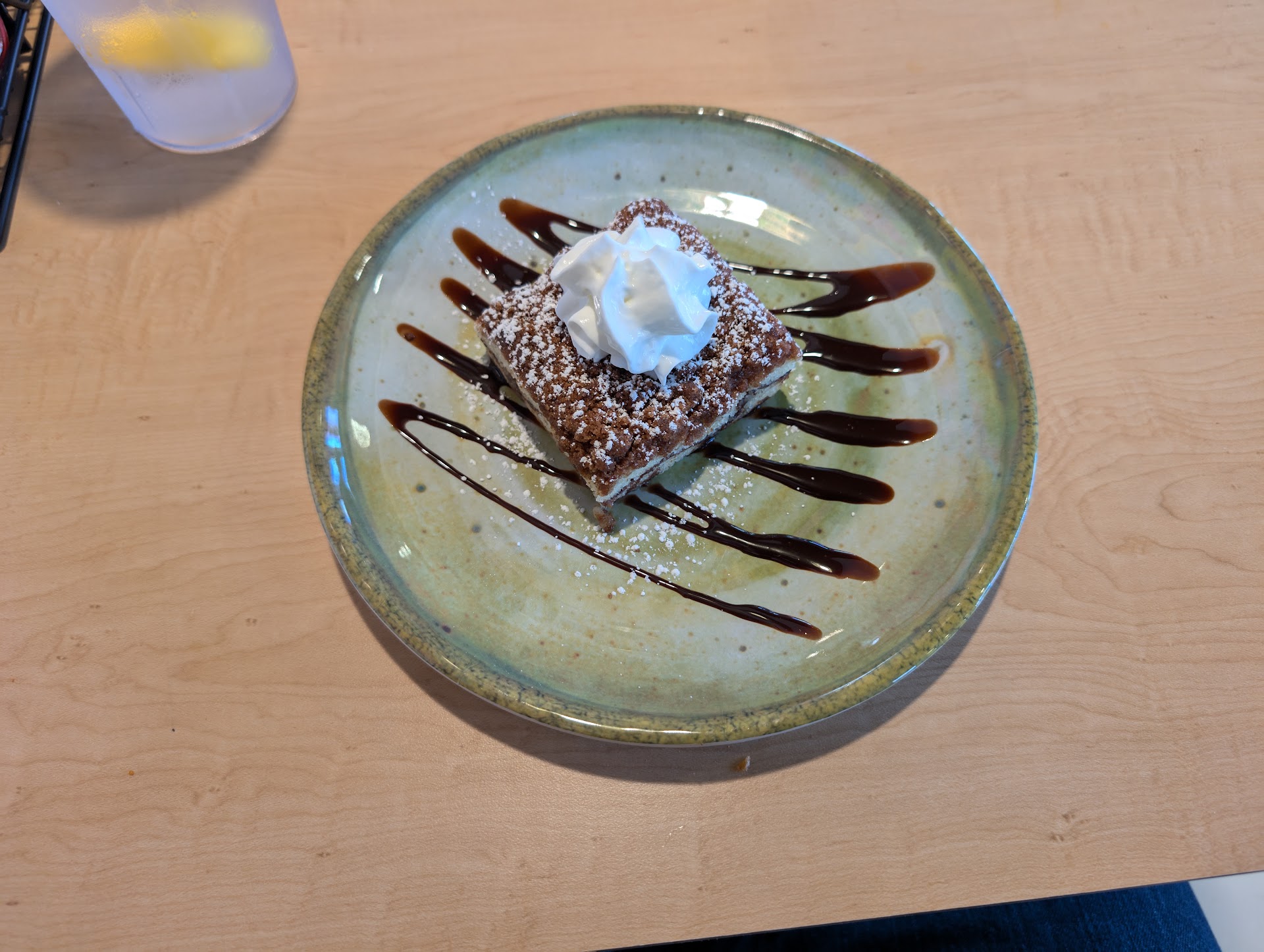 I ordered the chicken chipotle melt with fries. The wait wasn't awful and the food was delightful. The filling of the sandwich felt generous and the fries were reminiscent of Checkers (which is some of the highest praise I can give). I was even offered a complimentary coffee cake for it being their one week opening. Not too big but just enough to scratch that sweet tooth.