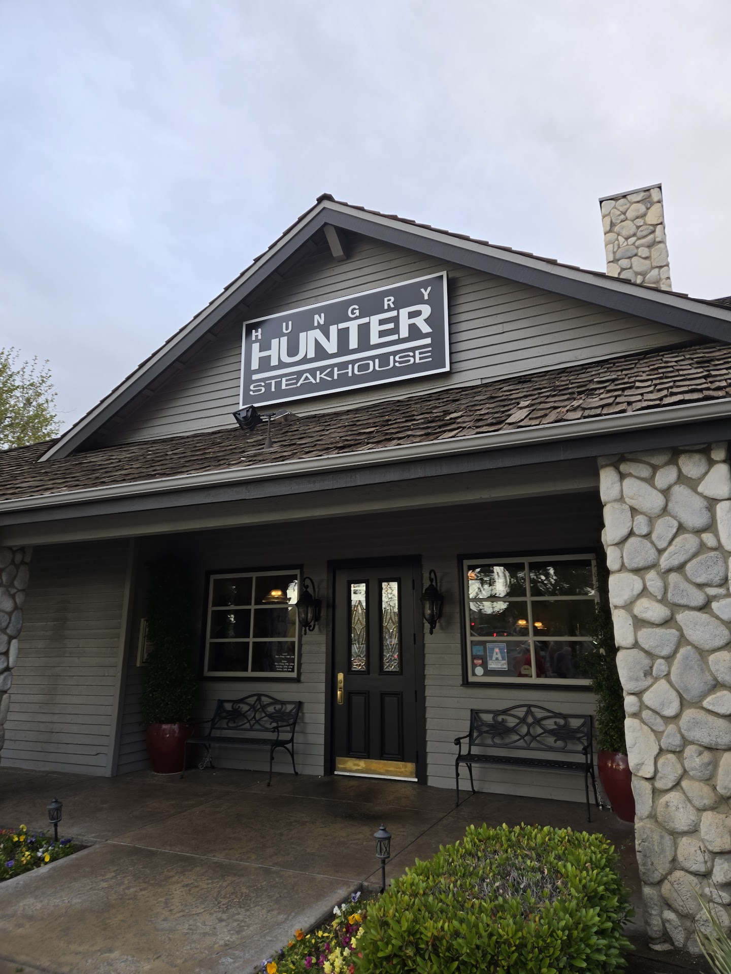 Read moreOh my lord! I was beyond stoked to try this place out having heard amazing things about it. Very expensive so one would assume food is superb and Exquisite. Boy was I wrong and completely mislead. Having ordered one of the priciest steaks (18 oz ribeye medium with a mushroom n onion peppercorn sauce topping), I was left speechless when food arrived. Literally... Not only was the steak half fat and grissel, it tasted like it was cooked on the sizzling side walk in front of the restaurant considering it's beyond 115 degrees here in Bakersfield, CA. Was over cooked and I had two bites and told the waitress I was just full and wanted a doggy bag so I could bring it home to my puppy, which I did. He enjoyed the $45 steak that's for sure. It tasted so bad I was shocked when the waitress didn't question me further bcuz when I used to work in that field, if my customers didn't finish their meal, I took offense (in a good way) to it and did whatever I could to make them happier bout their experience dining with me. Again I'm not blaming the waitress it's not her fault the food was horrifically bad and the mushroom onion peppercorn sauce that was SUPPOSED TO GO ON TOP OF THE STEAK, came out 10 minutes after my steak, yet the 3 items were in separate dishes. Made no sense bcuz I was specific and clear about it when I ordered. And she knew what I wanted. This is all just my negative experience and I will never go back. Anyone who reads this please be careful and do not order the steak, any of them, bcuz it won't be the way you want it. Nor should anyone get their Caesar salad too! That's a whole other scenario that I will simply say unless you want to DRINK THE DRESSING, get the soup bcuz there was so much dressing and little amounts of romaine, I used a spoon rather than a fork no joke. But that pales in comparison to everything else. The only bright spot, well 2 actually, was the waitress was beautiful and so sweet and kind and caring yet was so busy she failed the attention to detail and that's not good. She was, however, on point with refilling our drinks which was another good thing. This post is long enough. I'll leave it there. I wish I had a photo to share but I didn't want to ever see that steak again haha. Hungry hunter management, if y'all are seeing this, we spent over $300 on a dinner for 4 celebrating my father's bday. It might be in your best interest to somehow find or figure out a way to touch base with him since he could have gone anywhere else in the city. But he chose hungry hunter and I'm pretty sure that is the last time as well. Good luck to everyone I hope y'all have better experiences than my...