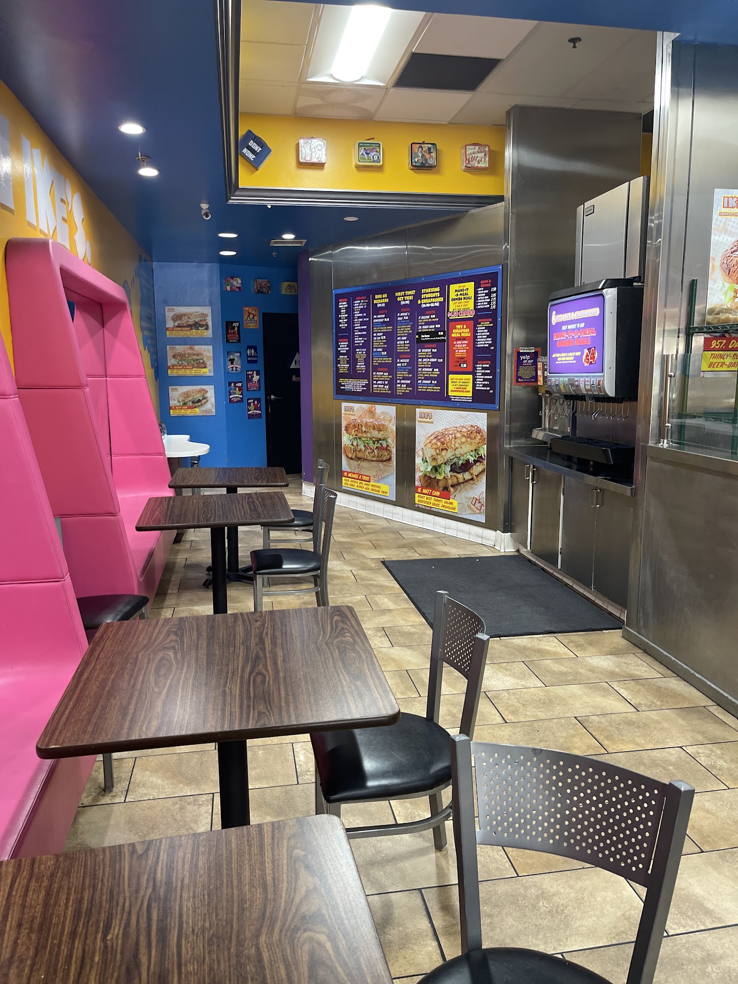 The menu is a bit confusing and apparently there are more sandwiches listed on signs near the restrooms. The store has 7 tables so seating is limited. However, we didn't have trouble finding a place to sit, which is unusual for a new restaurant opening in Bakersfield, where it is usually crowded after opening. Google Maps lists it where the old Basket Robbins used to be, but you find on the other side near Color Me Mine and Cold...