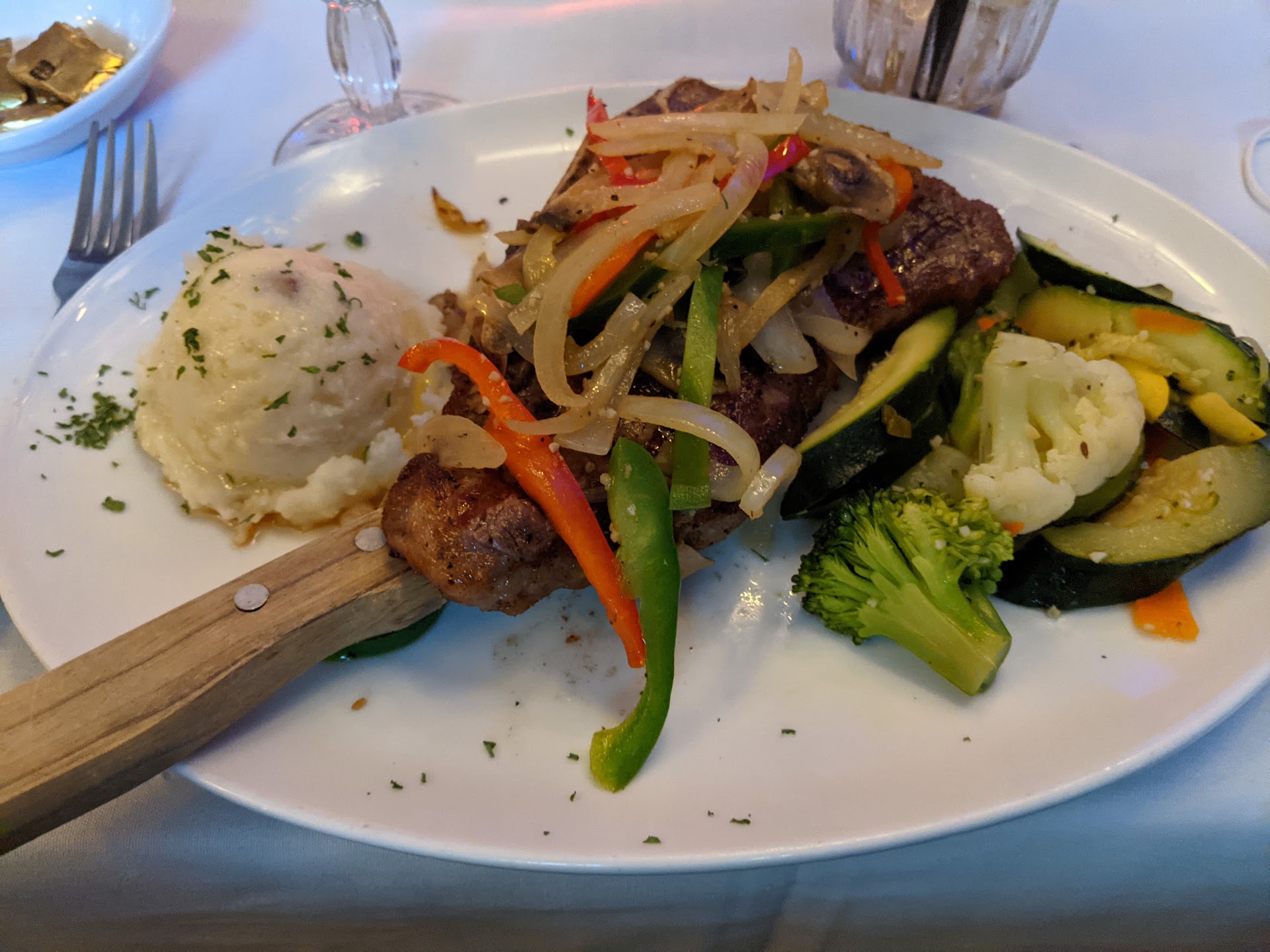 This place was on its way to getting a 2 star 🌟 🌟 review, But something interesting happened at the end, and they redeemed themselves to 4 🌟 🌟🌟🌟 stars! (I don't know why this thing is not letting me give a 3 &1/2 stars 🌟🌟🌟 As to how they redeemed themselves, I'll explain why,... BUT FIRST, THE CRITIQUE: Regarding the waitress: So, as a Server, in the restaurant & hospitality business, you are expected to greet the clientele with at least A SMILE & GIVE YOUR NAME! That's not too much to ask for. But aside from lacking that, our assigned waitress ALSO didn't seem too eager to attend us, as if she was stressed out already (It was barely 12pm) By the way, everything I wanted from the menu at first was not available until after 3pm! 😖 So having to settle for something else, I ordered a particular platter from the menu, & what was delivered was chopped up meat rather than a traditional whole steak that I am supposed to slice & cut to my liking, not theirs. The manager, who was a sweetheart, was actually serving it to us while at the same time, our assigned waitress, finally catching up to us, accompanied her to help with the other food. At this point, I had to say something. After asking my question about THE OBVIOUS, the assigned waitress (who never even introduced herself) managed to answer before the manager did and this is what she told me: "Uh, yeah, that platter is served that way but I probably should have told you" And my response was: "well, yeah, I think it would have been a good idea since the menu never specified that. Usually when people order something that is called a "steak," they usually assume they're going to get a full steak so that they can cut it up and prepare to their liking, and AGAIN, nothing like that was described in the menu, right?" At this point her manager asked me: "Are you not OK with this?" My answer was: "Well NO, But I'm not going to reject the order since we've been waiting for our food for over an hour." At that point, the manager(not the waitress)did what was professionally expected and apologized, before we started eating our meal. Again, the manager was very nice, and obviously caring about this experience. As for the waitress...whatever... The food was still good, and as I was pondering what type of dessert to ask for, we were pleasantly surprised by the manager who, appeared with 2 dessert platters! She apologized again for the misunderstanding and said that this was their way of apologizing and making sure that things "will be better next time." I told her: "You've read my mind because I was actually getting ready for dessert!" And as we were finally getting ready to leave, our assigned waitress who's name we still don't know, FINALLY SMILED as she bid us farewell! I wonder if it's because maybe she happened to glance at the receipt where we gave her a $15 tip(suggested by my wife - I had suggested no more than $10), or maybe she received a little talking to, behind closed doors...who knows?...