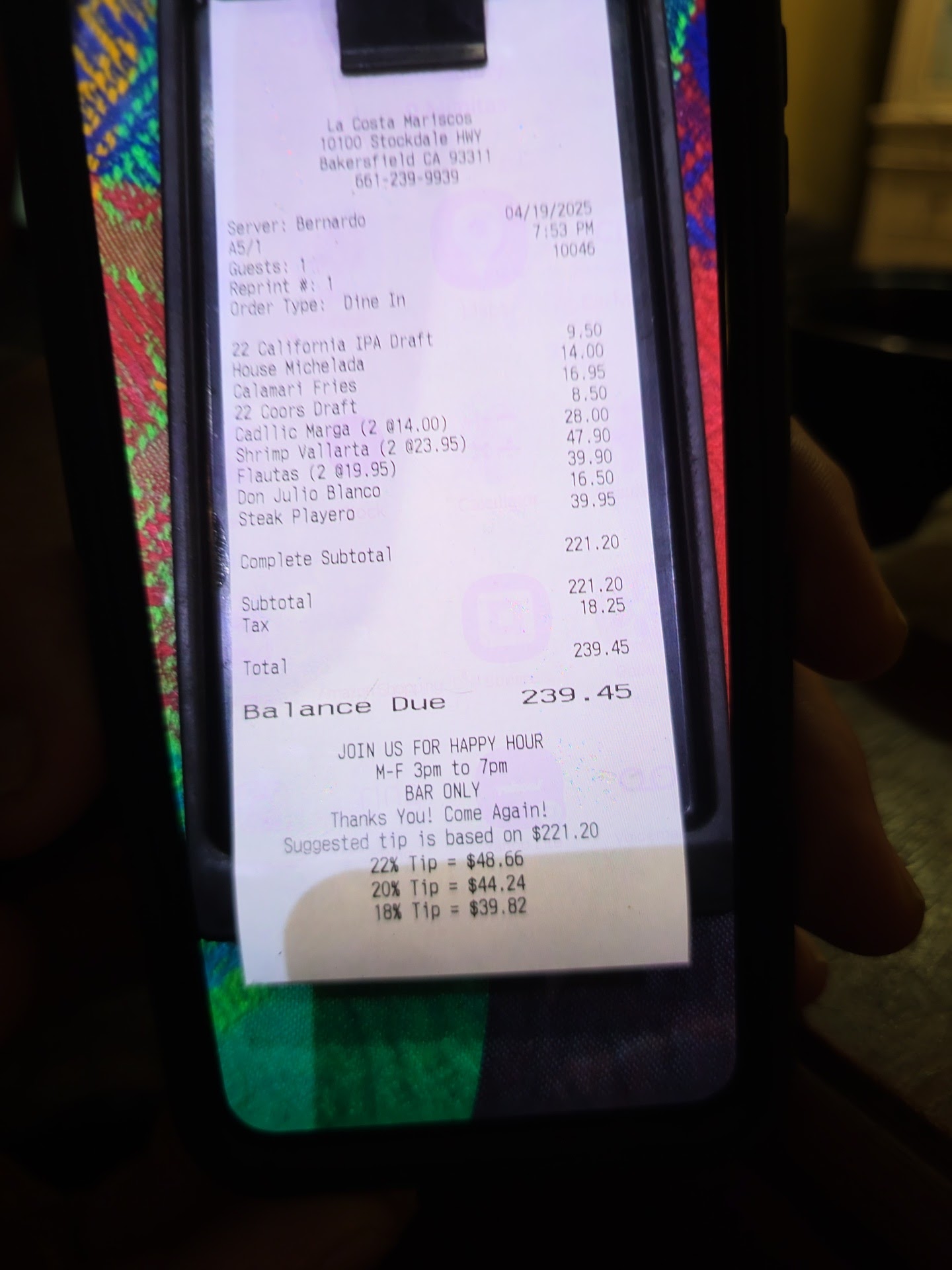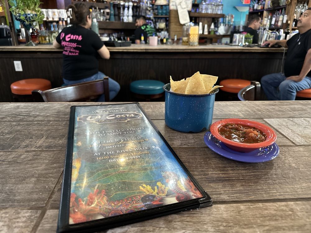 Read moreSo I have always enjoyed La costas bar service and drinks. There is a great extensive menu on drinks and the appetizers are very good aswell. But I have ate at the restaurant side the last 3 times. The food lacks in flavor and just lacks that wow factor. I ordered chile rellenos, shredded tacos, tostadas, (which was soggy) and it fell apart. I had to eat it with a fork. The one thing that never dissapoints is the calamari fries, those are always delicious. What I was completely unimpressed by was the fact that if you ask for a spicier salsa, you get charged extra. Any Mexican restaurant you attend will always offer their patrons a mild and spicy salsa. But not here, that was such a let down. To top it off, it was just an unpleasant tasting salsa. So I paid for a side of salsa that was not only disgusting but the size of a large cup of soup. What was I going to do with a big ol salsa, I just wanted a quarter size to drizzle on my tacos. Why not offer a good salsa at a smaller size that the house provides, or even if you charge for it, whateverworks, but make it taste good. Just seemed like a gimmick to charge customers for items that most restaurants provide freely. It's definitely not fully authentic cuisine if that's what you're going for. But they do have a few items on their menu that...