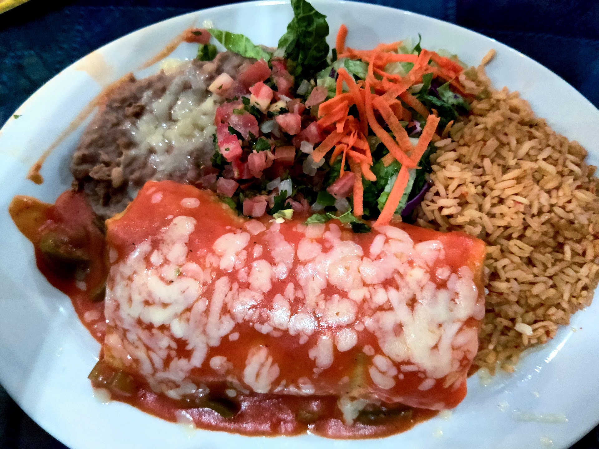 I ordered the Asada Burrito and made it as wet as Bakersfield the evening I visited, which is to say, very. Food was brought relatively quickly and the drink menu was impressive as well. The massive portion size left me with a lovely lunch the following day, though the inclusion of a very dry looking... "Salad?" stayed on the plate as we left.