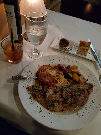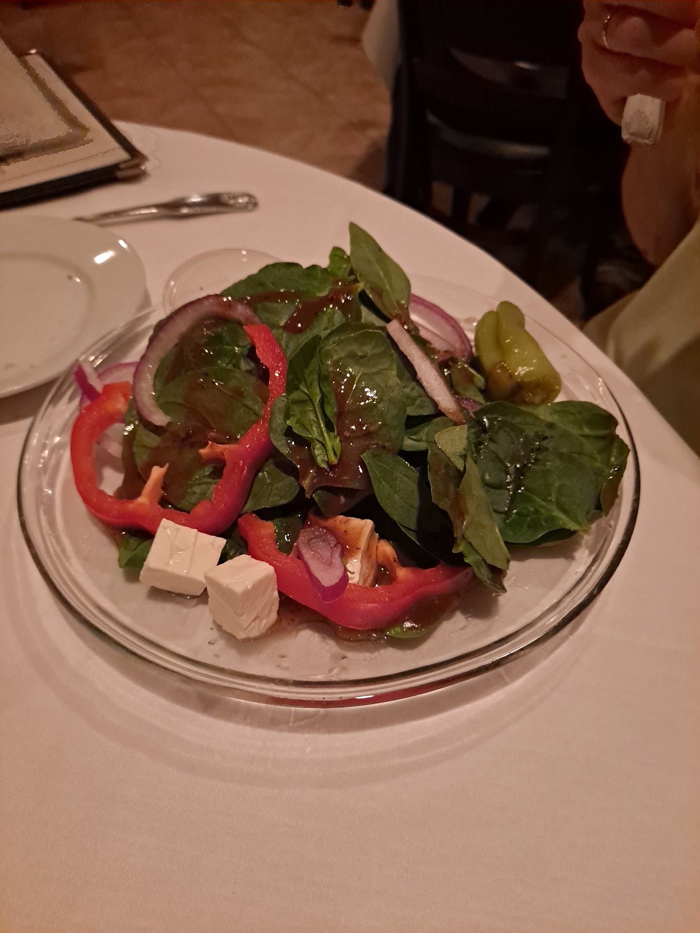 Read moreFirst time trying this place. It was actually pretty good. A friend recommended while visiting family. I will say that I personally have had better fettuccine but my mom ordered it and liked it so that's what matters. The Greek salad was really a spinach salad as there was literally ONE olive and as shown those 3 little pieces of feta. The waiter brought out a small cup of olives which was nice. The little round things in the picture are fried mozzarella with marinara sauce. Very good! The pork chop was so tender and seasoned just right! It wasn't my order but I had to try it. It was sooooooooo good! I ordered the cheese manicotti. It was OK. The edges were a bit hard like it was under or overcooked. The waiter was terrific. Super attentive, friendly. I can't remember his name for the life of me but it was different. They only open for dinner and I think you have to make a reservation. Good music, nice atmosphere. All in all we had...