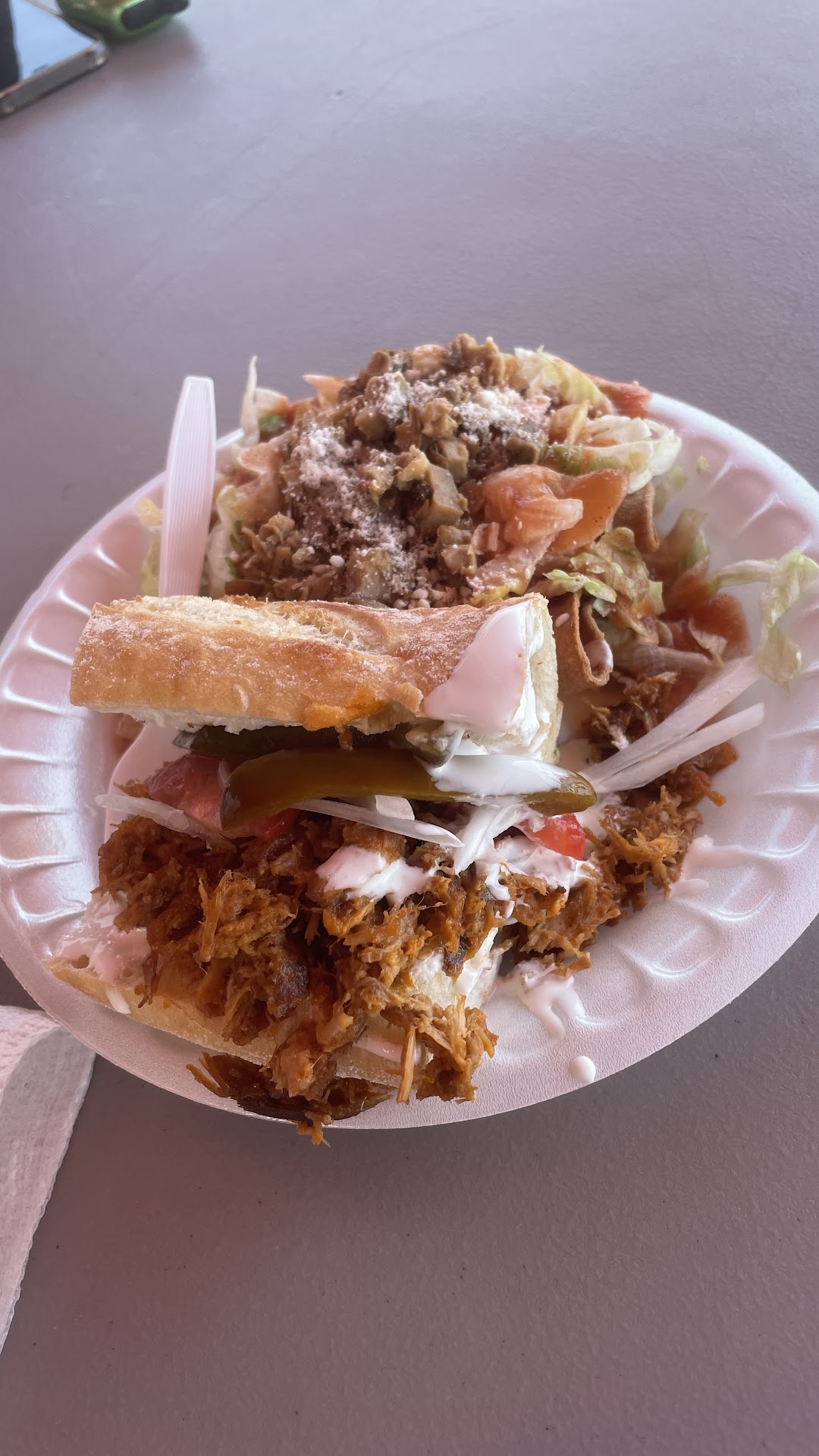 Read moreSo I went to try this taco truck cause it is next to another restaurant I eat at . I read some reviews and it sounded good , worth giving it a try . I NEVER eat at taco trucks . I ordered the torta ahogada shrimp combo which is half the torta and two tacos . So I get my plate and naturally it is drenched in a red spicy chili sauce. Well I dont really like soggy bread but it was as described soo . The food itself was good I just felt like I had to hurry and eat it so it wouldn't turn to mush. Next time (because there will be a next time ) I'll order the sauce on the side. I will return to taste more items . My daughter ordered the tostada , she said it was OK. The customer service was good the woman at the window gave us a brief description ,along with pics ,of most items . We sat at the seating area provided. ...