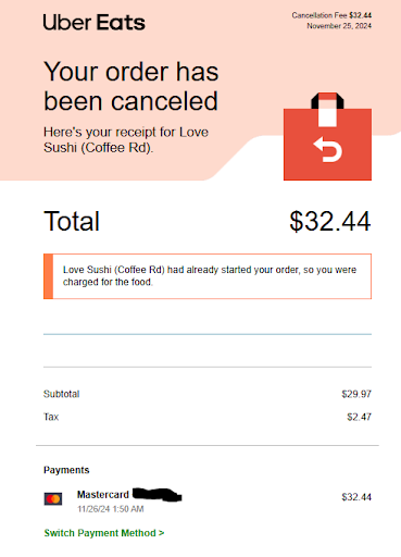 Additionally, we ordered and paid for Love Sushi's "Heart Attack" appetizer (spicy tuna, jalapeno, cream cheese) but it was not included in our delivered order (substituted with edamame, perhaps?). The edamame would have been $3.95 ... but we paid $7.95 for the appetizer. Disappointed. (Perhaps they had run out? They did not communicate with us, so we do not know. And if it was a substitute, perhaps one of their other appetizers closer in price to what we paid for could have been included? If it was a specialty, as an example, perhaps we'd be more impressed with their food.)