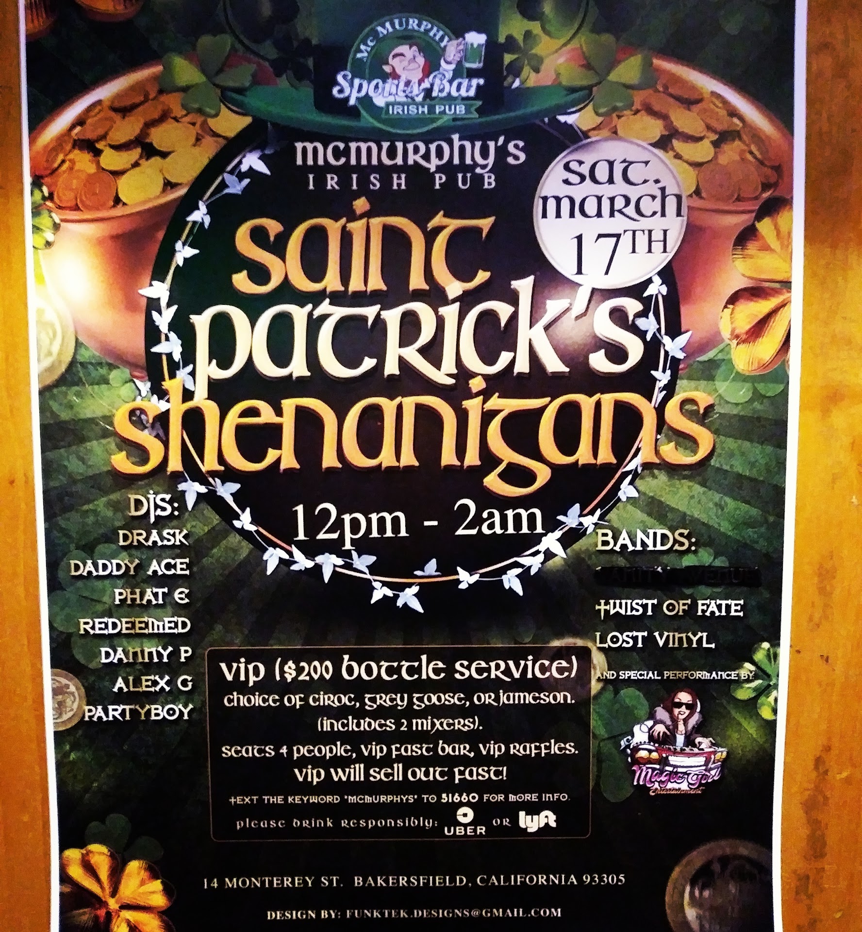 Read moreLove this place! Everything one would expect from a corner bar. I can't really say it's an Irish pub except in name and that they serve Guinness. More of a Hispanic flare. Lots of weekly events going on - karaoke, free menudo during football season, plus community events in the upstairs room that can also be rented for private parties. They make a fantastic Michelada and Bloody Mary with all...