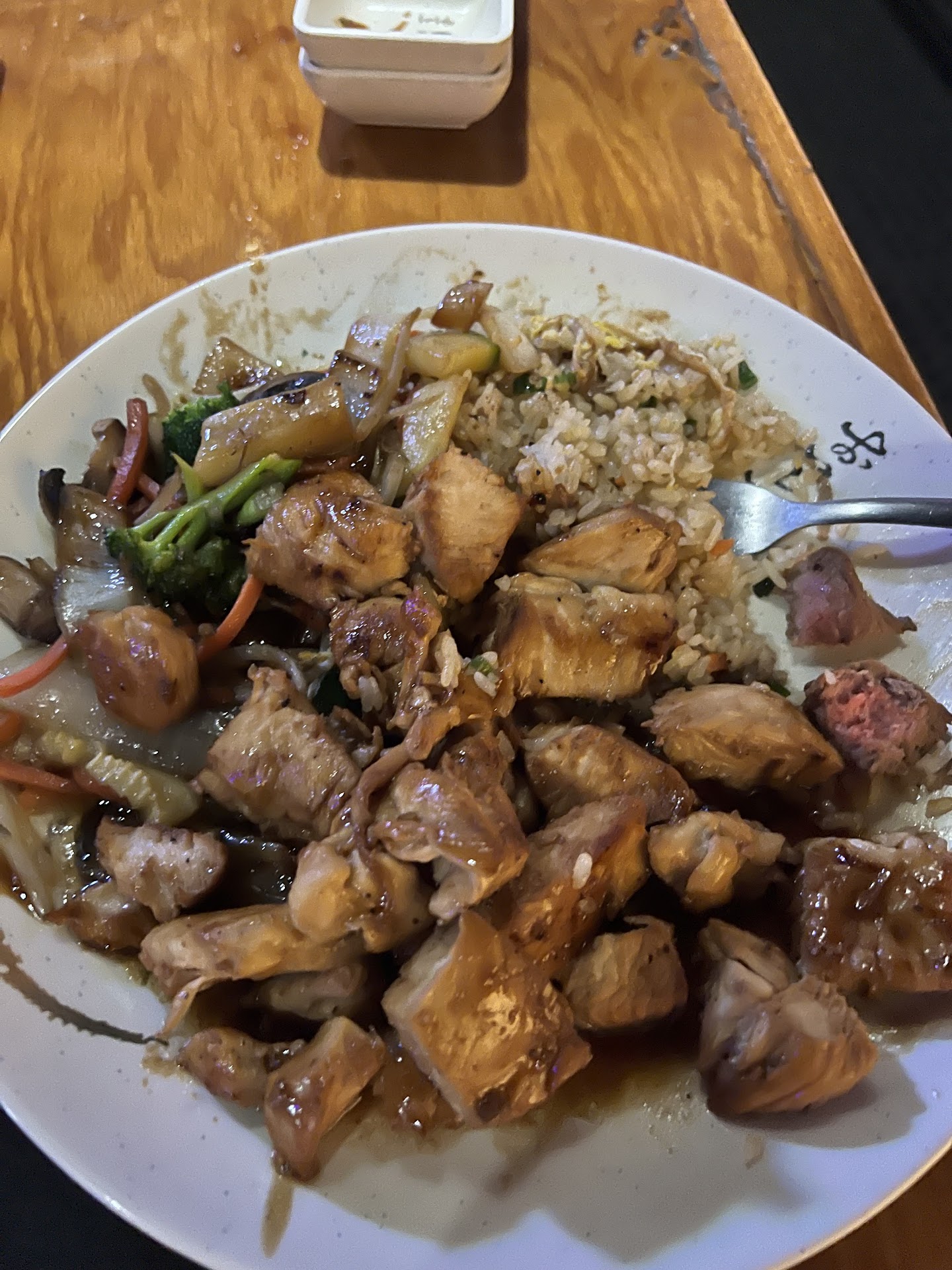 Still get the SAME COURSE. Your get your miso soup, salad, choice of protein(s), fried rice, assorted veggies (the most obvious difference but not much), then end with ice cream. Prices seem fair but didn’t hold on the receipt and compare to other places in town.