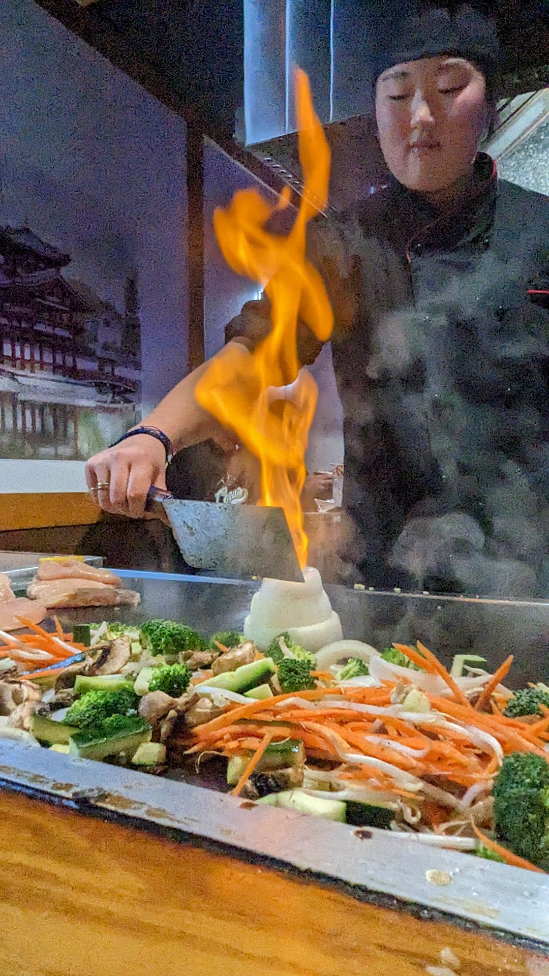 Went for a birthday dinner on Friday, October 28 of 7 people so we had a whole table to ourselves. We had the head chef, JAY. He was INCREDIBLE! I would 1000% RECOMMEND HIM IF POSSIBLE. I been to a lot of these teppan shows in general (in and out of town) and his show was a breath of fresh air. Very nice, funny, and made sure we where all good with our food.