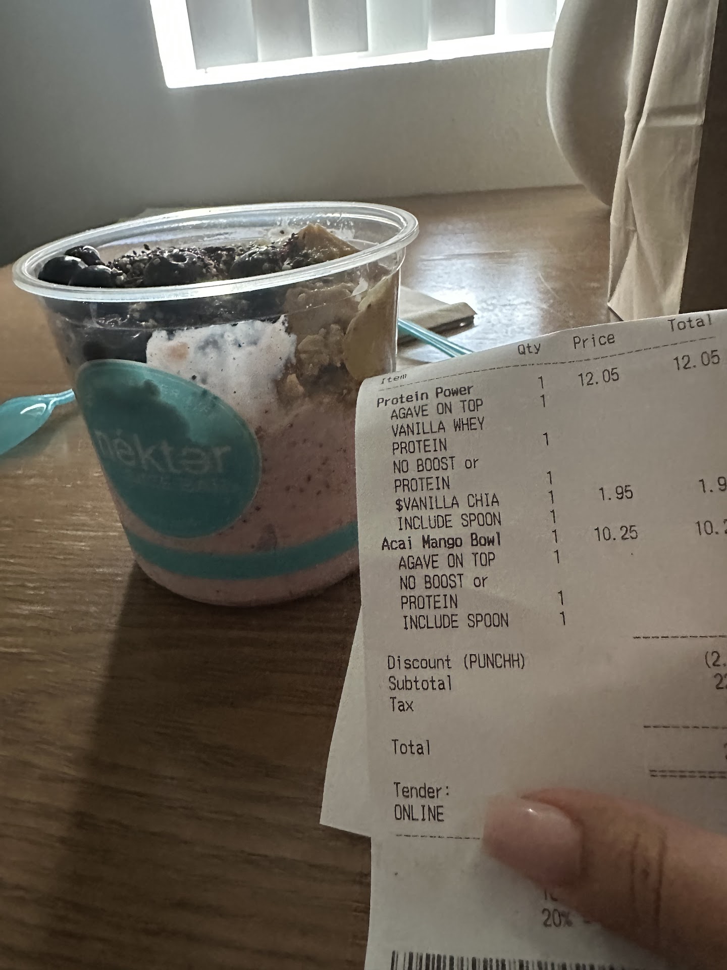 Read moreI am giving 1 star for customer service. I ordered a protein power bowl with a chia pudding layer. This is the second time I order this where the forget to add the chia layer. Mind you this bowl cost $12.05 and to add the chia it’s 1.95 so it’s a $14.00 bowl. It’s very frustrating when you’re not receiving what you’re paying for. I attempted to call and ask why this keeps happening and the phone rings and says the voicemail box is not set up. This place always seems to have poor service, and with the prices so high it’s almost...