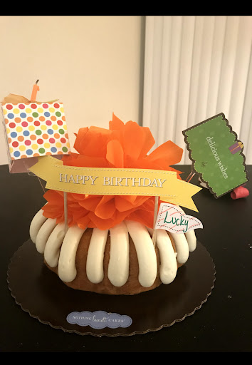 Any gift giving holiday is a mad house at bakeries. I know this, my bff worked at one in her teens and a decade later she's still bitter about it. However, today, the eve of Mother's Day was gravely mismanaged at Nothing Bundt Cakes. I ordered a four days in advance a picked a time of 2PM that was most suited to my work day (because why else designate a time) and ended up waiting an hour in the hot sun. And these poor girls are running around like crazy trying to prevent customers who'd been waiting for so long from exploding (it didn't happen while I was there, but I'm sure it happened eventually) while people who didn't plan and order ahead are able to walk right in and be in and out in five minutes. This whole time, nary a manager in site, none of the girls had PPE on. Also, I watched two of them leave whether because their shift ended or it was their lunch, while there was still a line down the plaza, and no one showed up to relieve them. I heard one of the girls tell a complaining customer (who had been waiting longer than me) that they had over 400 hundred orders this weekend. Alright, great, that's fantastic, mad bundt cake profits right there. If you had that many, though, you should have KNOWN it was going to be a mad house and planned accordingly so when someone says they want their Mother's Day gift at 2 pm, they aren't standing in line until 3 PM while people who didn't plan ahead are in and out in five minutes. My order included leaving my phone number, so at the very least I could have gotten a call of warning, or a deferred delivery time to spread them out and better accommodate that poor staff. That being said, the cakes are great, but I don't recommend the bundlet towers. They don't travel very well, and even while mine was finally being handed off to me, the little flag was already falling off. There is no type of supportive structure, just three bundlets stacked one on top of the other and wrapped in cellophane and tied with a ribbon. I tried to be careful, but by the time I got mine where it needed to be the cellophane got loose from the ribbon and it became more like a bundlet bag. It was a hot mess, albeit a tasty one, and it once again reminded my mother that I am the disappointing child. I tried to tell her I waited stubbornly in the hot sun for an hour for that, and my BROTHER would have never waited for that! She was...