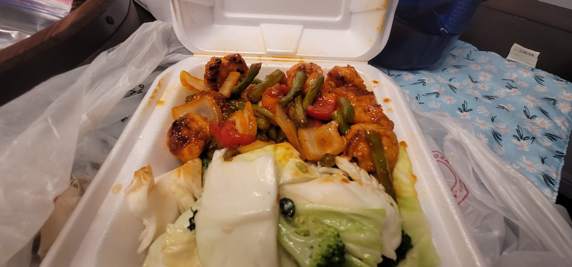 Placed online order to be completed by 5pm. When arrived at 5 the staff did not know about my order. They initiated on putting together the order. But they still needed two prompts from me to continue/complete the order. When arrived at home with my order I saw that many of the cartons were around 3/4 full. One was less than 1/2 full. I paid nearly 15dollars for that single order. Thus I am readjusting the rating of this location to 2/5 stars. I am certain that I'll go to another panda location for the next...