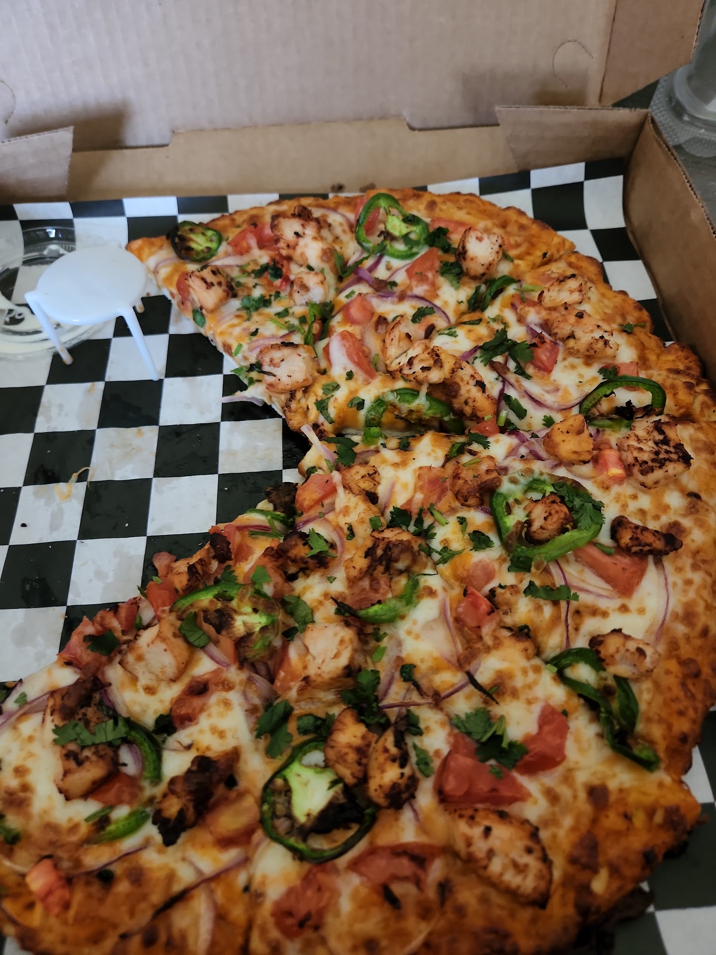 Read moreI made my order online and went in to pick it up. Once I got into the building the restaurant was super clean, well lit and felt somewhere in between a pizza pub and an upscale bar, in the best way possible, as soon as I got to the counter I was greeted warmly. I dont remember the man's name who talked with me but he let me know about the restaurant and answered all my questions. Letting me know about his dream for the restaurant and about there menu and how they want to run it. When my food came he asked about sides and let me know they dont charge for things like a side of jalapeños and ranch because he himself disliked when places would charge. I got jalapeños and couldn't pass up the homemade ranch. When I got back to work me and my coworker agreed "this is the ranchiest ranch I had ever ranched" everything felt amazingly fresh and you could tell they put pride and hard work into their food. The butter chicken pizza was full of fresh flavors and yet you could taste every component and how fresh it all was. Everything from the marinated chicken to the crust. Amazing food, amazing people. I wish them the best in their venture and they definitely earned a...
