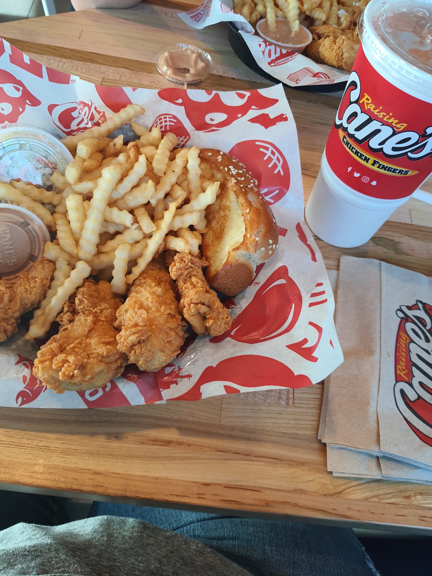 Read moreI feel bad giving a bad review. But this is the worst Raising Cane's I have been to. I travel for work, so I have been to several. The needing completely fell off the chicken. The chicken was hard, I don't even know how that happens. The fries tasted like they had been out back in the fryer. The service was horrible, the manager (assuming because she had a different color shirt) was at the register when I walked in, she looked at me and just walked away. That should have been my first clue to walk away.