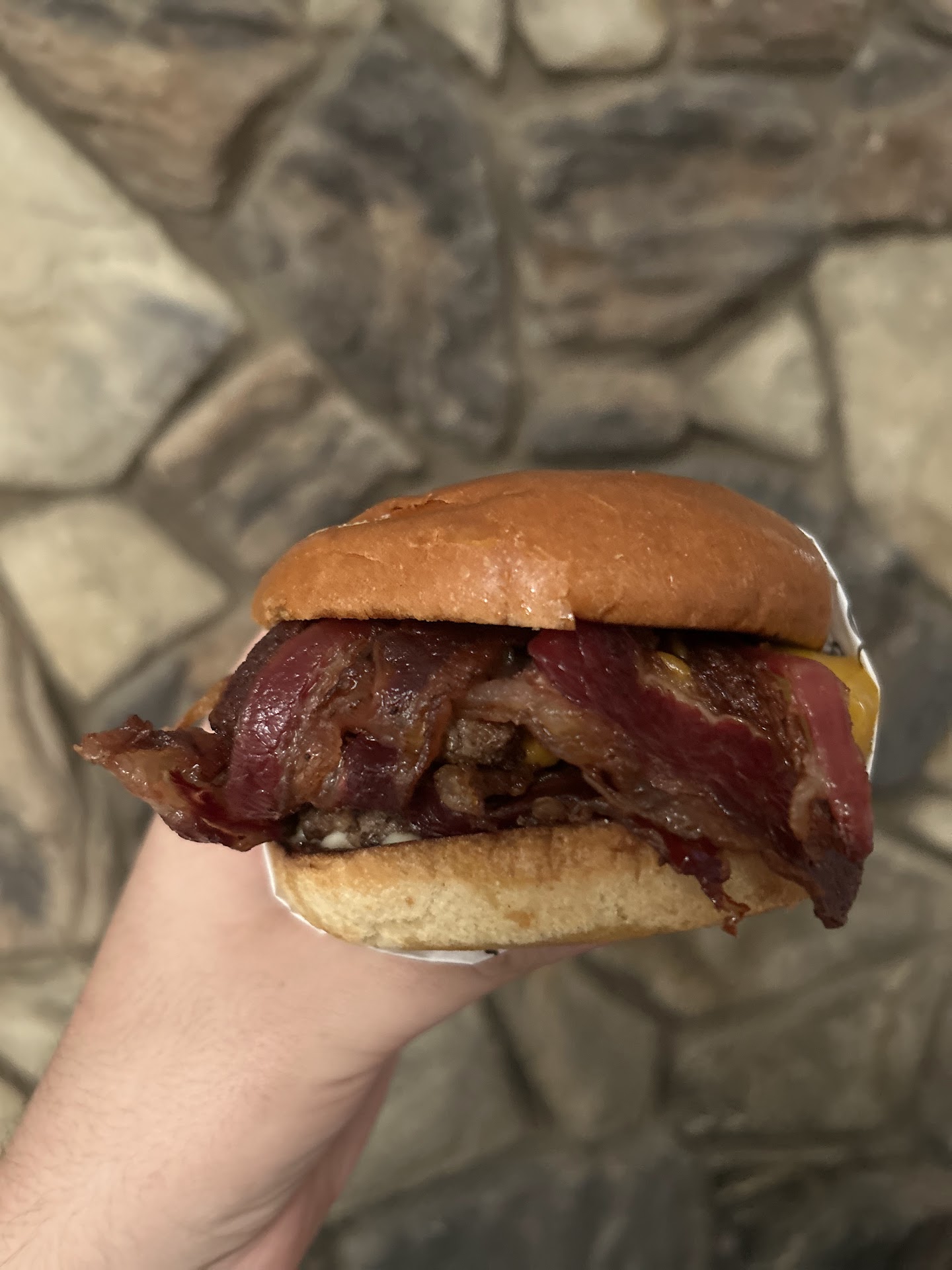 I visited the Calloway/Hageman location at 12:15pm on Sunday Feb 19th. There were 5 cars in front of me when I pulled up. I started my stopwatch on my phone to see what the wait was like. I was served my food at the window at 37mins and 38 seconds. The girl who helped me apologized as soon as I stopped at drive thru window. I've been to the White Ln location numerous times and NEVER waited anywhere near that amount of time. Only place in town I wait that long for gladly is Luigis. The food was GREAT! I had the Pastrami burger with cheese, fries and a soda. I also ordered a side of zucchini. The fries are crinkle cut with seasoning. The burger was loaded like I ordered it. The zucchini is the darker brown outer layer and was excellent. They have a sign on the drive thru window stating they charge 50 cents for extra ranch. Also I noticed a couple a lady with 2 kids and another couple and 2 kids who came up as I was in line on the "patio side" Only the first couple had been served by the time I made it to the drive thru. The drive thru is just one side and walkup on the other. They have 3 tables on a cement slab on the walkup side and it appears they will be erecting a patio cover with materials on the ground near this area. I will gladly cruise in there in the future but only if there are...