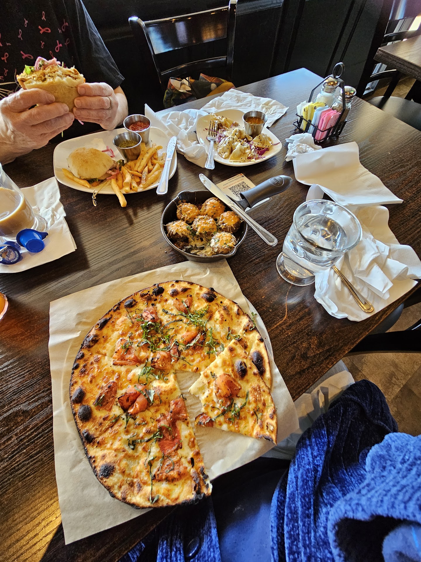 The atmosphere here is amazing. Its just the right amount of loud to be fun and gives off a great vibe. The food is also delicious. This was my first visit here this place was recommended to me and what a great recommendation it turned out to be. So let me start off with the pizza I ordered the bbq chicken pizza. It wasnt a standard what you'd expect bbq pizza. It has a spicy pesto sauce and thatbhas just the right amount of heat and the chicken is sliced super thin. The crust is a little softer than I expected, but was perfect for this pizza. I have literally thought about this pizza 2 or 3 times since I was here a few weeks ago. We also ordered the jalapeño popper appetizer which I wasn't a fun of it was a jalapeno with a cream cheese center and a piece of bacon wrapped around it deep fried. I feel like if the jalapeno had cooked a little more it may have been great. But you basically bite into well done bacon and a mostly raw jalapeno. I also was underwhelmed by the mac and cheese. You pick 2 toppings for your mac and cheese i got chicken and bacon. Which both tasted fine but the cheese in the mac and cheese didn't have much flavor. We also orderd the carnitas nachos. They were really good but if I ordered them again I'd try a diffrent protein the carnitas was not a traditional carnita more of a shredded pork. I definitely will go back and try other things and get that pizza again. The food other people ordered looked and...