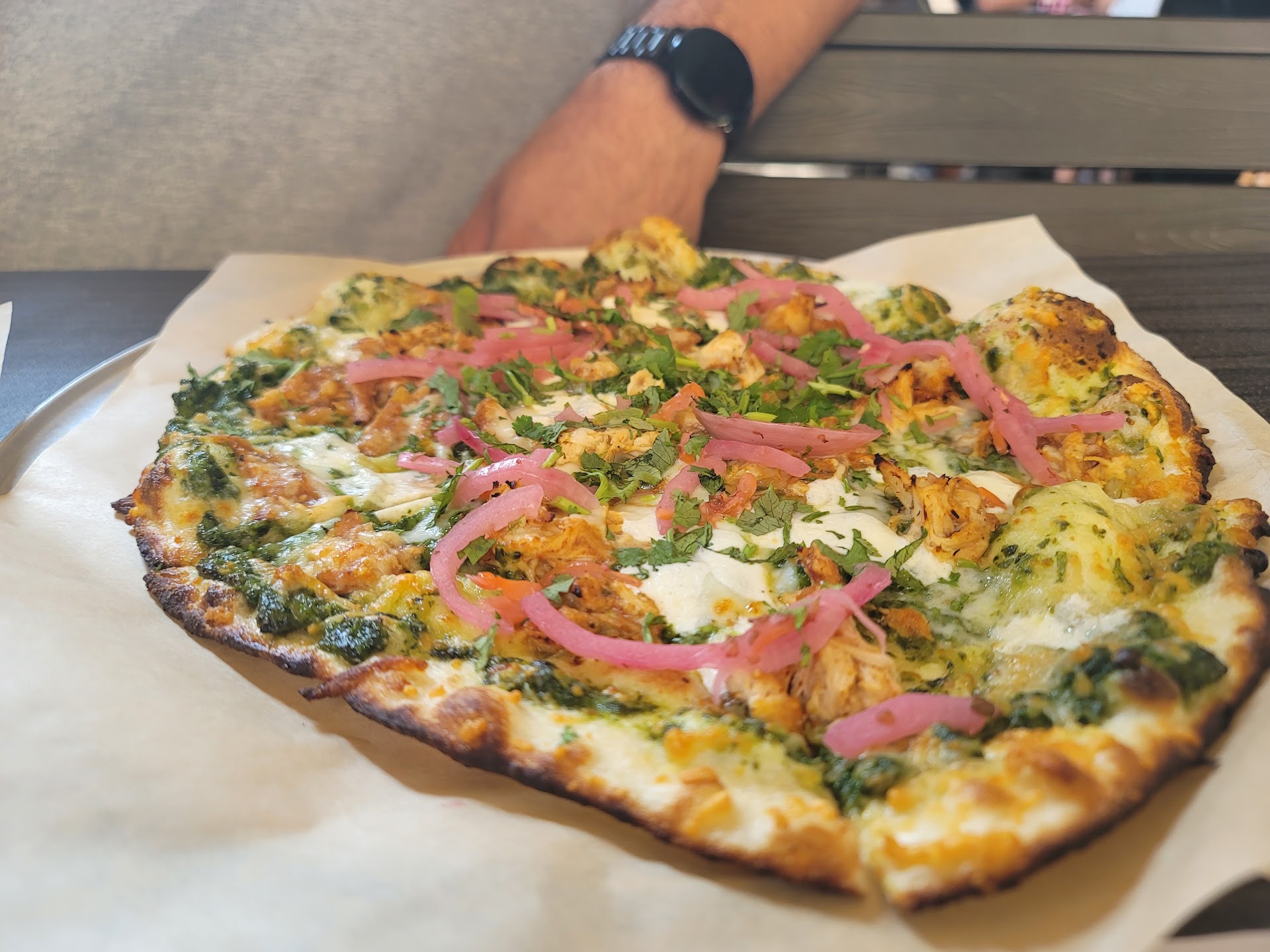 The atmosphere here is amazing. Its just the right amount of loud to be fun and gives off a great vibe. The food is also delicious. This was my first visit here this place was recommended to me and what a great recommendation it turned out to be. So let me start off with the pizza I ordered the bbq chicken pizza. It wasnt a standard what you'd expect bbq pizza. It has a spicy pesto sauce and thatbhas just the right amount of heat and the chicken is sliced super thin. The crust is a little softer than I expected, but was perfect for this pizza. I have literally thought about this pizza 2 or 3 times since I was here a few weeks ago. We also ordered the jalapeƱo popper appetizer which I wasn't a fun of it was a jalapeno with a cream cheese center and a piece of bacon wrapped around it deep fried. I feel like if the jalapeno had cooked a little more it may have been great. But you basically bite into well done bacon and a mostly raw jalapeno. I also was underwhelmed by the mac and cheese. You pick 2 toppings for your mac and cheese i got chicken and bacon. Which both tasted fine but the cheese in the mac and cheese didn't have much flavor. We also orderd the carnitas nachos. They were really good but if I ordered them again I'd try a diffrent protein the carnitas was not a traditional carnita more of a shredded pork. I definitely will go back and try other things and get that pizza again. The food other people ordered looked and...