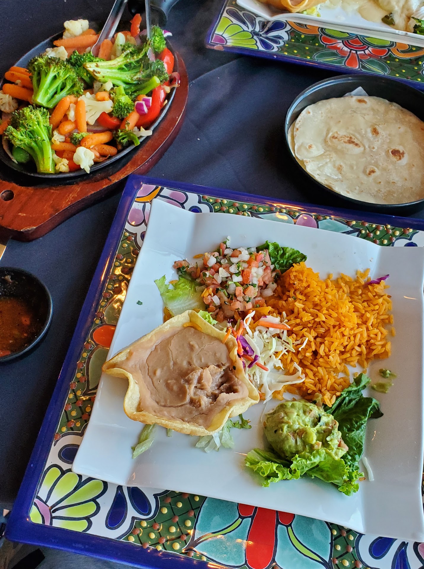 I'm giving it a 3 because the ambiance and service is great. The decor is done very well. My disappointment is the food is less than mediocre. On my recent visit, I ordered the carne asada. I asked for medium-rare and got well done. the steak was very thin and poorly seasoned. It lacked the mallard reaction you would expect from a nice steak. The cut of meat was poor and has some gristle. It was served with a small portion of rice (I like that), refried beans in a small taco shell, a side of guacamole and pico de gallo. I gave my wifemy soup, which she said was very good. We believe it was a carnita/vegetable soup.