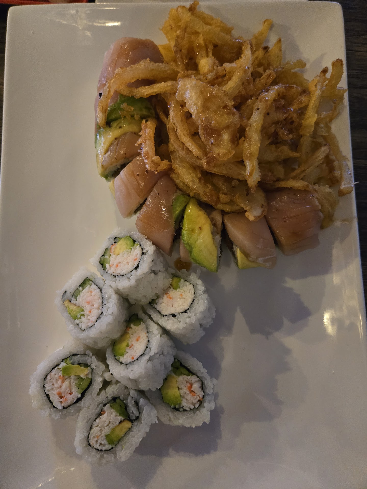 The sushi is on point here. Very well prepared and the presentation was nice. The waitress was very friendly. The sushi chef as well.