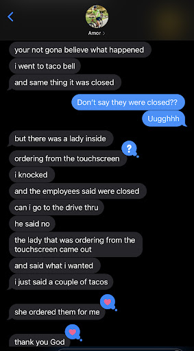 Read moreMy husband checked into a nearby hotel on his way home after fighting the Caldor fire for two weeks. The hotel restaurant was closed, so he walked to three locations that were all closed looking for a hot meal. He seen someone ordering inside your Taco Bell location and knocked on the door to see if he could sneak in an order, and your employee just yelled they were closed. And he wouldnât even serve him through the drive thru window. Itâs understandable that you canât keep your doors open 24hrs. However, to turn away someone who is asking to order from the drive thru window is just heartless. I hope this doesnât happen to anyone else. Thank God there was a lady inside still ordering and was able to order some tacos for my husband, she definitely was an Angel...