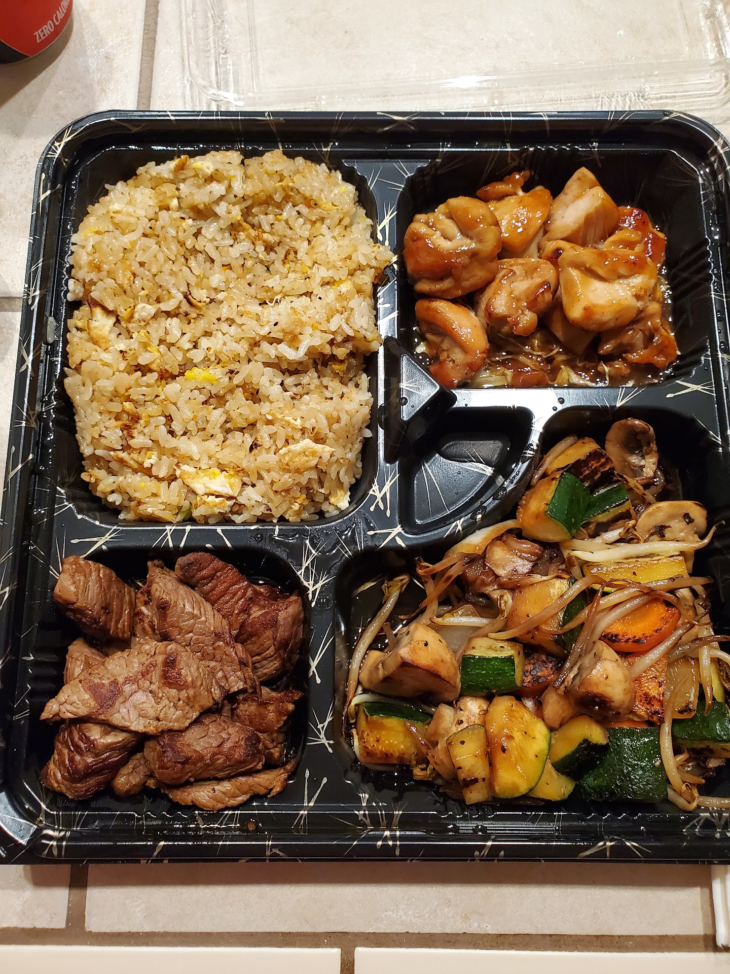 I was looking for a place to do a little light bodywork on my car amd ended up working on my car behind this place the employees were cool about it and when i was done i asked the guy taking a smoke break what kind of restaurant it was he said "japanese" I love sushi so i told him ill clean up here and come check you guys out. I wanted to sit at the bar but with covid i couldn't so i had to be that guy sitting at the table solo. My server was awesome she had my ice tea never as much as get even close to empty. I started with edamame and miso soup then had a spicy tuna and spicy shrip hand roll followed by the nigiri sampler. Could have stopped there but i had the server ask the chef to make his favorite or signature roll. And i don't know exactly what was in it but man it was amazing! I asked what it was called and i was told it was "the thing roll" check these guys out they also do the dinner where the guy cooks in front of your table, and i could hear them doing sake bombs lol i know a few of them had...