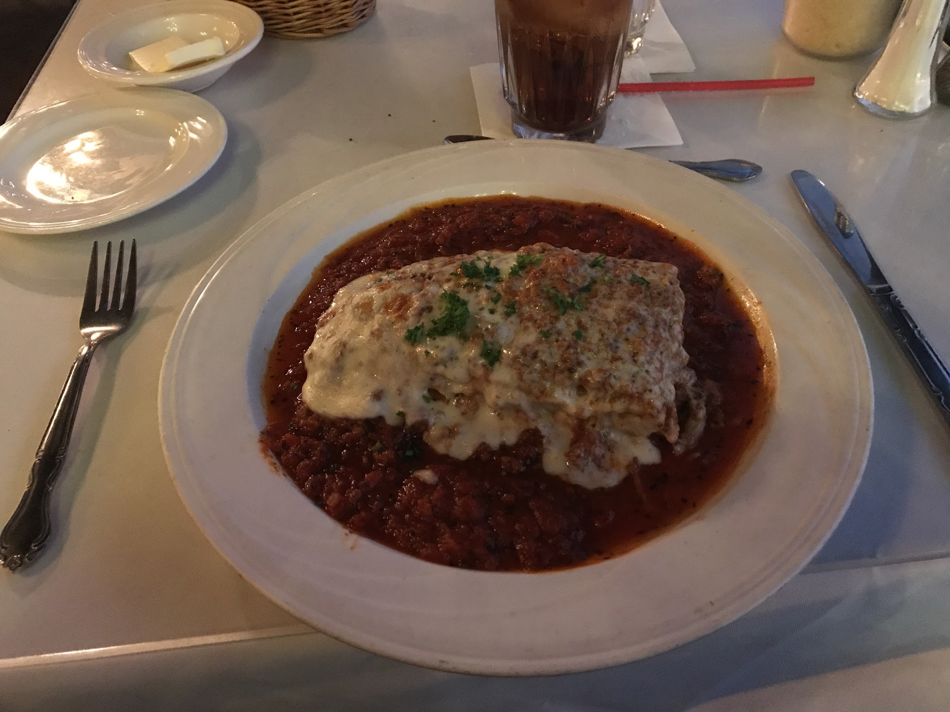 Our AMAZING server took such great care of us, going absolutely above and beyond once she found out we were celebrating our anniversary. She was attentive, refilled glasses quickly and brought over plenty of complimentary treats to make sure we were happy throughout the evening. We had the crab cakes appetizer which was phenomenal, the nantua sauce they served it with was so delicious and our server even brought us a new bread basket, knowing that we'd want to soak up that glorious sauce. They were running a few off-menu specials for dinner and dessert, I got the filet mignon special and my wife got the Dover sole. The filet was cooked to a perfect medium rare and served with a beautiful mushroom gravy sauce on the side. I had a bite of the sole as well, which was also equally as great, the sliced grapes offering a perfect burst of refreshing sweetness to complement the lemon butter sauce. Dessert was great as well, we shared spumoni ice cream and a slice of chocolate mousse cake and overall had a great meal and a great night!