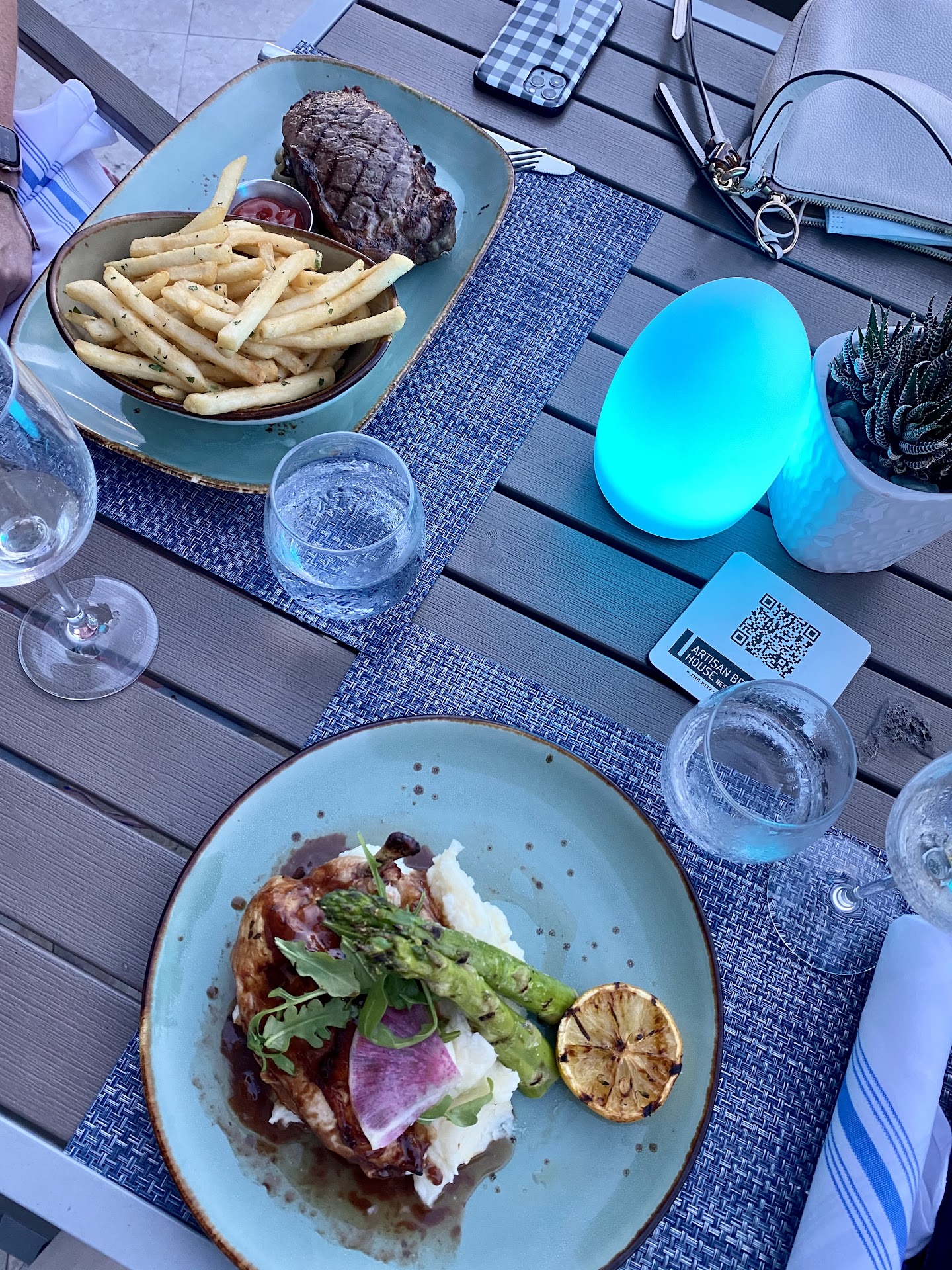 Lastly, the food was subpar. Steak was overcooked and tough. Dessert was flavorless. And as mentioned before, the hummus was fine but a staple for the pool, not an elegant NYE dinner.