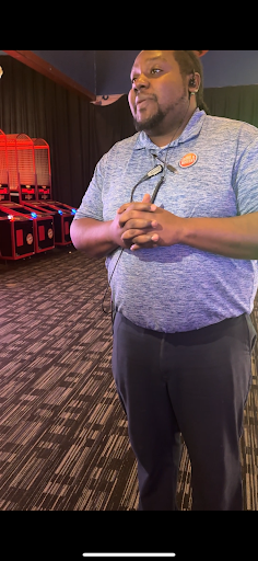 DĂŠcor-wise, the space still feels like a converted theater, with black draping fabric hanging along the arcade wallsâsome of it worn or torn. It gives off a kind of nostalgic âold cinemaâ vibe, but it could definitely use a facelift. The orange and blue color scheme, true to Dave & Busterâs branding, clashes a bit with the vibe of the space and might benefit from a more modern, updated design and paint refresh.