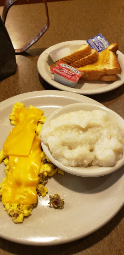 Read moreThis location is usually better than average, but I was disappointed in today’s visit. The table was visibly dirty when I sat down. There was no offer or attempt to clean it by the person who seated me or waited on me. I wiped it down myself with a napkin. The “scrambled eggs” weren’t fully cooked and had the consistency of pudding, just mush. The ketchup bottle had pink, opaque fluid inside the cap as soon as I opened it. So, I wipe it away with a napkin, close the bottle and give it a good shake. It still spits out this big stream of light pink fluid onto my hash browns and the heavy vinegar/spoiled taste ruins them. The bacon and pancake were the only saving factors of the meal. The waitress wasn’t rude, but she also wasn’t very attentive or personable. There was no check in to ask how the meal was or to see if a refill was needed. I absolutely hate getting the bill the same time as the meal. I was planning on having a piece of pie too, but this practice of setting the bill on the table with the food puts me off of most restaurants. The lady working the register was slow too. The lady in front of me was picking up an order and while bagging the order, the cashier stops to have a conversation with a customer at the bar. Luckily, another person behind the counter noticed and came to take care of the growing line. I finished my meal 30 minutes ago and already have an uneasy rumbling in my stomach. It’ll likely be a while before I try this...