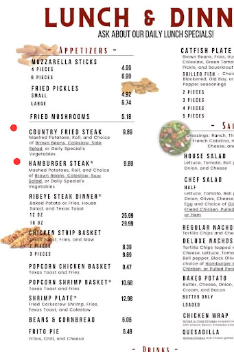 Read moreThe wait time was horrible. For a hamburger steak you get a hamburger patty with canned gravy, cold mashed potatoes and beans even if you order cold slaw. The beans were over salted so be careful if on high blood pressure medicine. The cornbread was bland, dry and cold. It's worth 6.99 but expect to pay more than that. The chicken strips are okay, thank you Walmart. The texas toast is not true flavor regular texas toast. The fries are not salted which is a good thing and slaw is not bad for prepackaged food. The cost is 7.99 for the platter. The overall quality is very much indicative of a tv dinner that you had to wait 45 minutes for. People got up and left because their food was taking so long. No one seemed to care except for one waitress who is new, been there for just a couple of weeks. She was more concerned about customers that were not even her own. She made the experience...