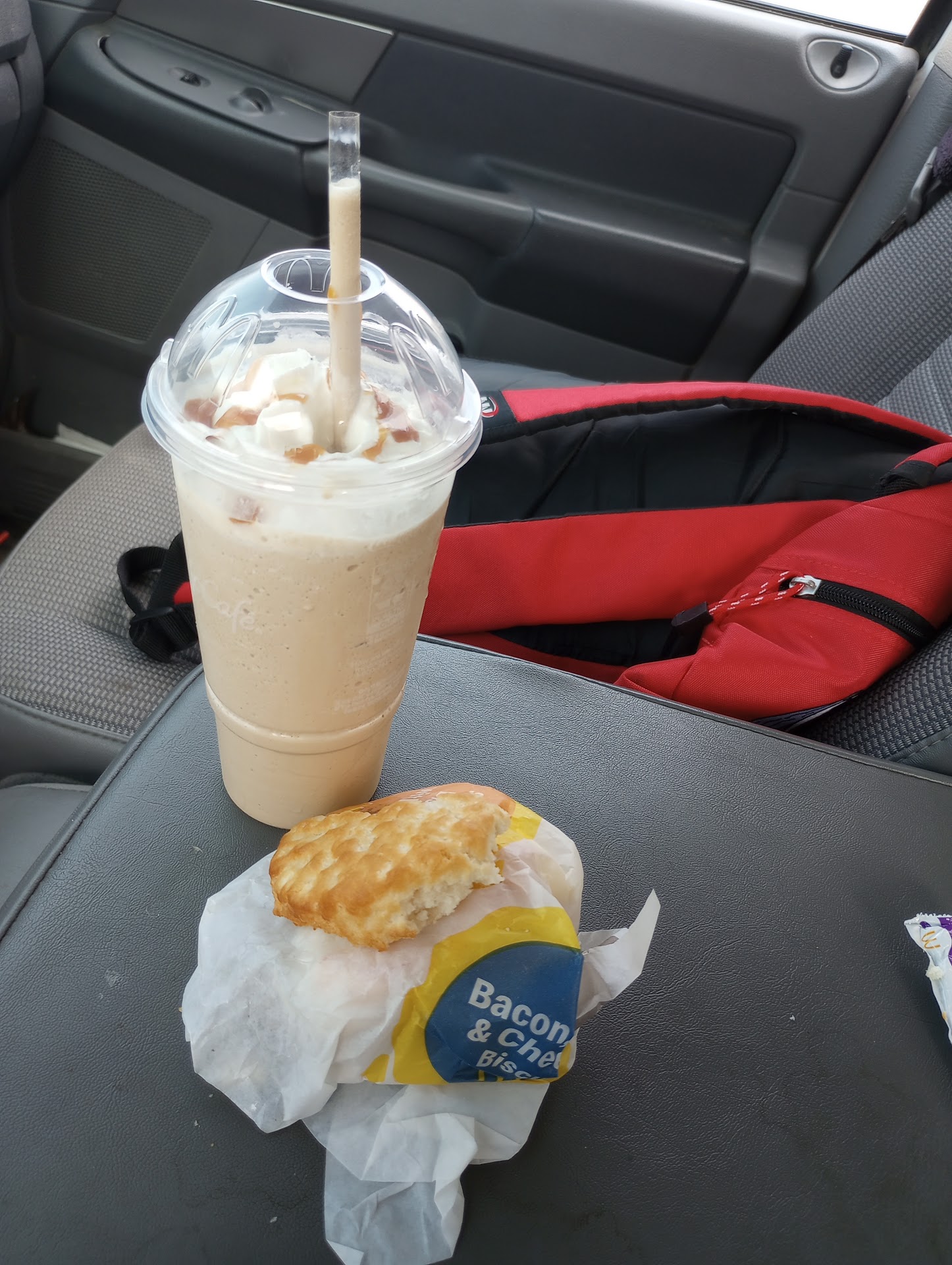 Read moredriving through in my way home, ordered curbside, one biscuit one coffee (frappe) waited in my spot for 20 minutes before I went inside to make sure everything was ok, there was one girl working the register, younger girl trying to get everything taken care of, very friendly and polite, older lady with short curly gray hair yelling in the back that she was ready to quit, she was angry when the girl at the counter told her I was inside and I needed the frappe, I waited another 5-7 minutes for her to make the frappe, she threw it in the counter I took it and left, I pulled out down the street and opened the bag to find my biscuit barely wrapped and broken in pieces, I get being frustrated and having a lot to do, but this lady needs to either take a week vacation to be replaced, she was rude to her workers and yelling at work shouldn't be acceptable, pick...