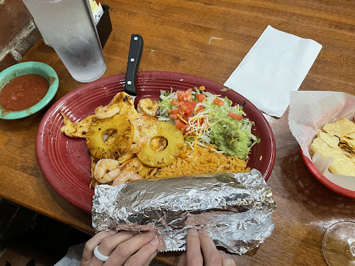 I had the Enchiladas El Patron, which was super filling. It had 4 chicken enchiladas wrapped in flour tortillas and topped with green sauce, cheese, and sour creme. A nice grilled pineapple ring placed right above the rest. I added some excellent rice for a side and some horchata to drink! The chips and salsa kept coming and the staff were kind and attentive.