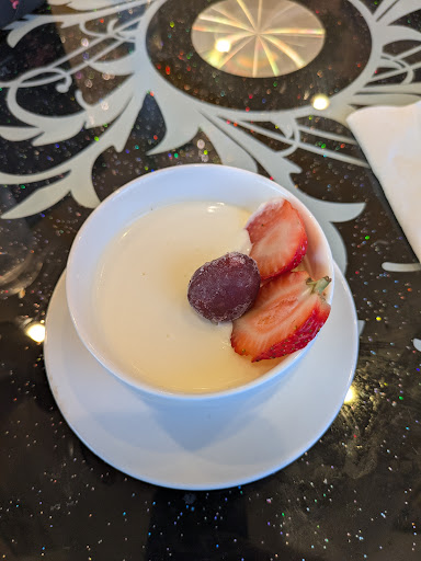 The lemon posset came in a small lemon bowl. It was my first time having it and would describe it as a sweet and sour yogurt. Small, refreshing treat on a hot day.