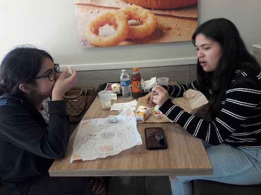 This must be a Homeless hangout:( Today a homeless woman walked in with a waterbottle and just filled up her bottle with soda while the manager watched no problem no questions asked, no nothing she should have been escorted out the door with out her drink or get her ass kicked like they do at Mickey D's. This is a trashy hangout the Air conditioner does not work.I love Burger king just not how they are running it here in BP I seen a homeless couple charging there cell phones and having Applebees food delivered to them inside of Burger-king and the Manger well aware what was going on,today they have the bathroom was open the homeless people taking advantage of a place to clean up...yuck. The other day a child was running around with no shoes on and ran in behind the counter. I would say what else I saw but I'm sure that mother...
