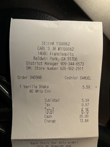 Ā Ā Ā Read moreSo I came in for a simple milk shake. U would think charging a whopping 6$ it would be what u paid for. But I forget we are dealing with Carlās jay are⦠they failed coming at me with the most melt shake Iāve ever got. Trying to play me with a smirk as if Iām naive enough to take it. So I request for another or for it to be remade to only get a ball of ice cream in the drink that was already melted down .. so I then simply ask for my refund to be refused and told I have to come with manager is there or I canāt get my refund.. this is absurd. The employees from 8-9 pm needs to get checked. And Iāve already contacted corporate to let them know how this location tried to...