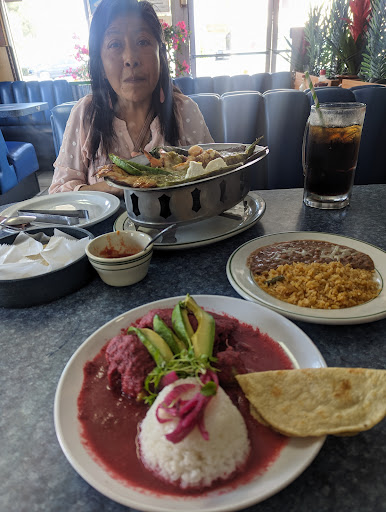 I have finally decided to try this restaurant after many years of wanting to visit. So happy it’s a Seafood and Mexican food restaurant. We stepped inside and were welcomed to the strains of upbeat Mexican music and by a nice and friendly hostess. She invited us to sit anywhere, then gave us the menus and complimentary chips and salsa. My son ordered the Huevos con steak, Mom had the hot cakes and eggs, and I chose the Camerones a la diabla. The food was good although little salty, just our personal preference. The shrimp were plump and juicy, not overcooked. Piping hot corn tortillas made fresh in house. The cafe de olla was bold and delicious. Their gender neutral restroom was clean and was complete with a baby changing station than can be stowed up...