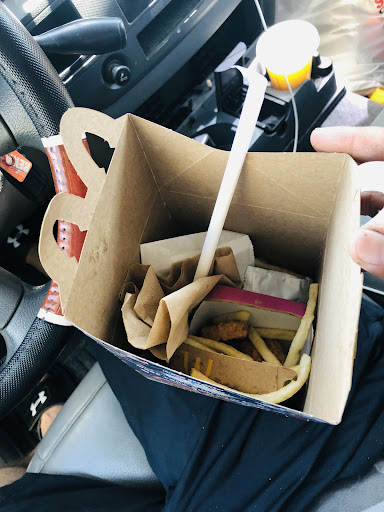 If o could give them a zero I would but I can't do !!! Horrible service drove there around 430 pm orderd 4 delux combos medium and a kids meals drove to the second window and they sent us to the parking lot because our wasn't ready and we said no biggie there busy right well no !! The Inside was empty for them to be busy and not take out the orders right and every car that came to order they would send them to the parking lot 30 min later an employee comes out running what's your order I tell him and he hands me the bag he had in his hand to tell can you check it because. Not sure whats in there ... It wasn't my order and when he brought my order my fries were soggy and semi raw like they just dipped them.in the fryer 2 min and took them out horrible Fryies and the burgers they were all a slob the Mayo ketchup and mustard was all slobed there there were no tomatoes o ly one pickle and ONIONS WHEN I SAID NO ONIONS ON ALL 4 BURGERS🤬😡 and to top it off they didn't even offer us any condiments for the fries and I would of Gone back to tell them but at this point we were all annoyed of waiting there for our order that by the time we got home with the disappointment we didn't want to go back to spend another 45 minutes last time I will be buy...