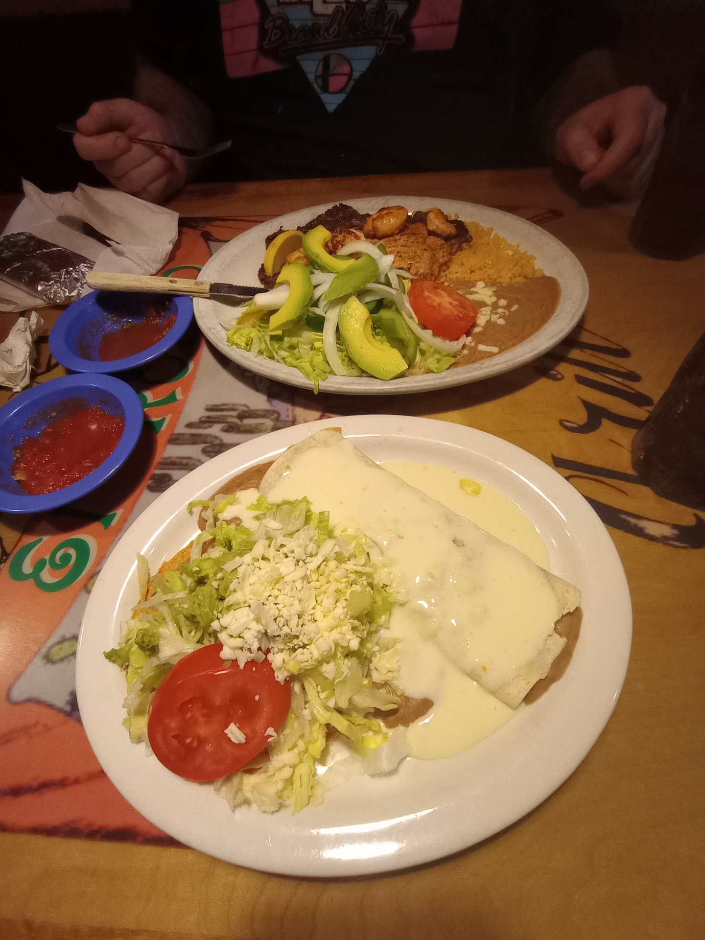 Read moreGoing in the place is very clean and inviting. We are promptly seated and our drinks are served ordered enchiladas with white cheese (had never heard of this )beans and a taco . Wife ordered enchiladas with cheese and a chili relleno. Our order comes and the beans are barely warm ,the enchiladas had no chili in or on them .They were just flour tortillas with seasoned hamburger meat inside. The cheese was poured over them to the extreme. I am a very picky eater the wife is not. The food was so salty she could net eat but half of one enchilada some of the beans .The relleno she left most of and did eat my Taco. I managed to get nearly all of my meal down (I was starving though) Never have I eaten Mexican food and there be no chili of some kind on...